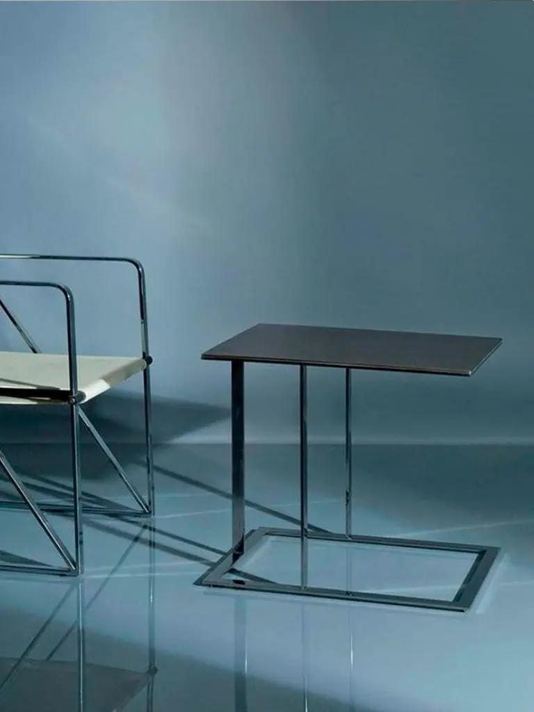 Horizon, Side Table In Patinated Silver Leaf Top And Polished Brass Base
