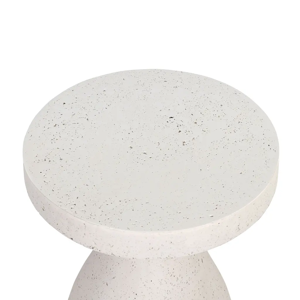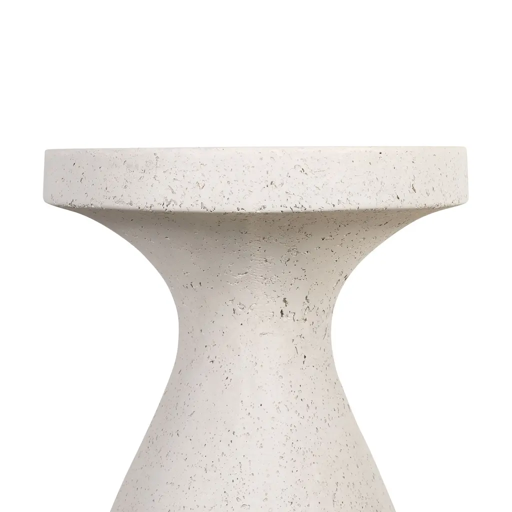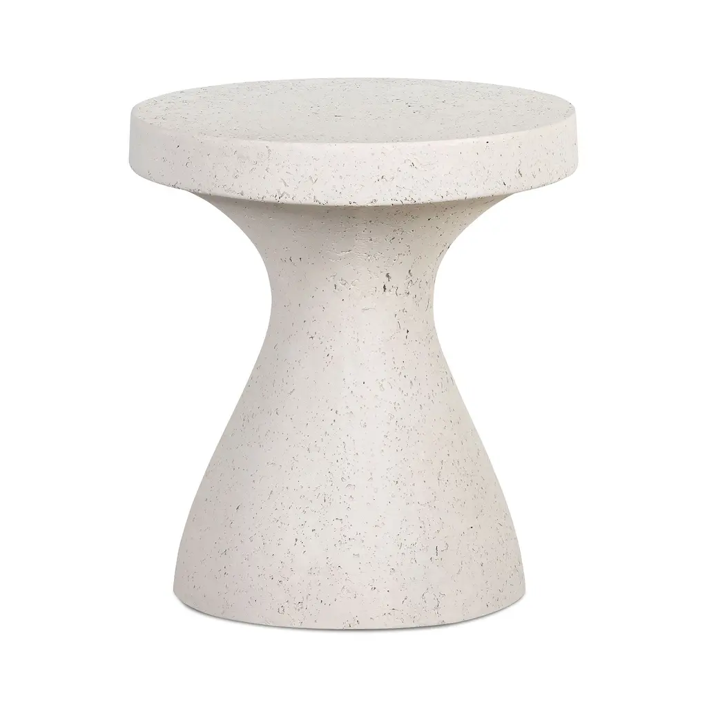 Makes a modern, shapely statement outdoors. Crafted from durable concrete with natural texture. Small footprint fits easily next to a sofa or chair. Creates a pedestal for snacks, drinks & more.