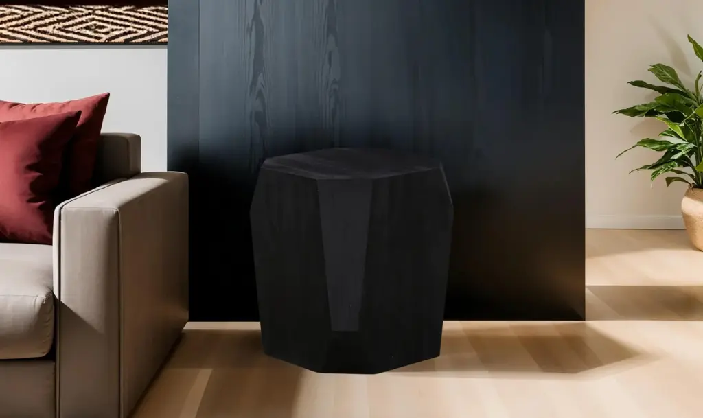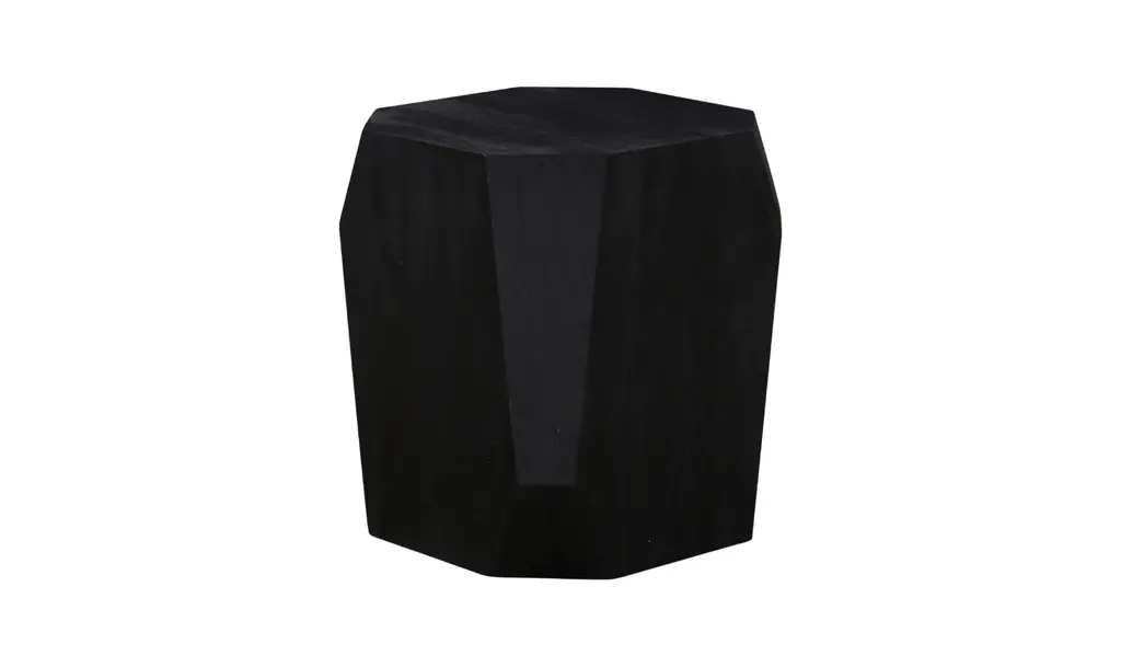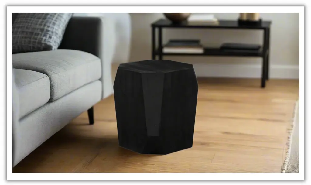 The Basalt Geometric Wooden Side Table is made from durable mango wood and features a distinctive geometric design. The distressed black finish gives the table an aged appearance, adding character to its straightforward design. This side table serves as a practical and stylish addition to various settings, including living rooms and bedrooms. The geometric shape and robust construction make it a versatile piece that complements a range of interior styles. The use of mango wood ensures both strength and longevity, making it a reliable choice for everyday use.