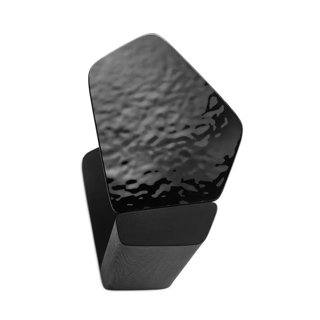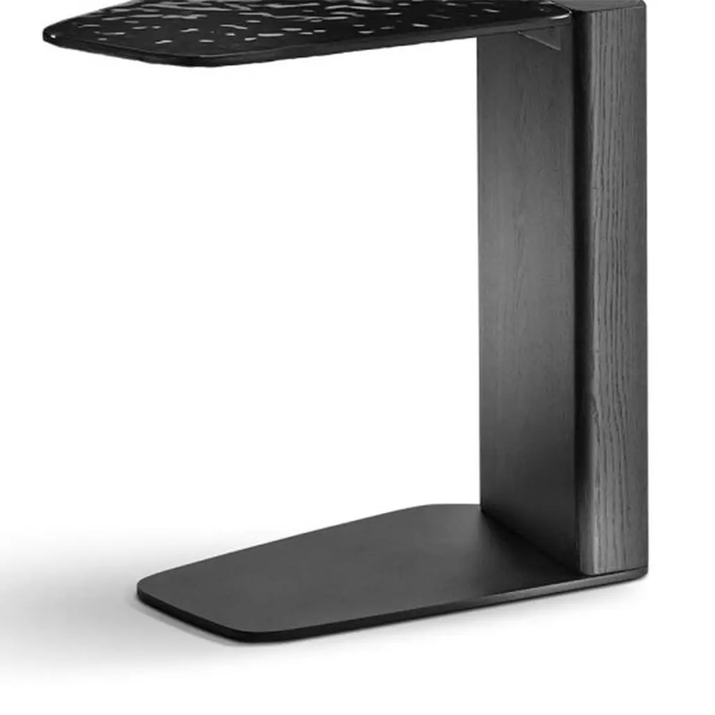 Side Table Hubert Black with solid wood structure in blackfinish and with fused top in glass with varnished undersidein black finish. With metal base in black varnished finish.Also available on request with solid wood structure indark brown finish.
