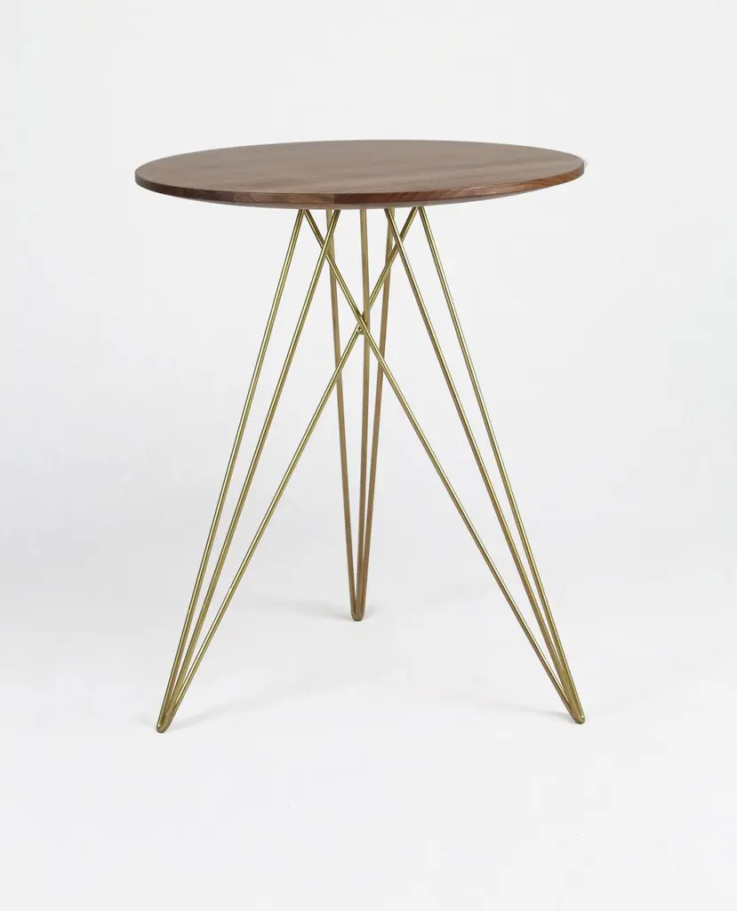 Hudson Hairpin Side Table Walnut Brassy Gold