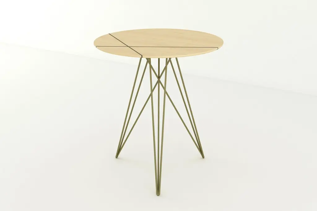 Hudson Hairpin Side Table With Wood Inlay Maple Brassy Gold