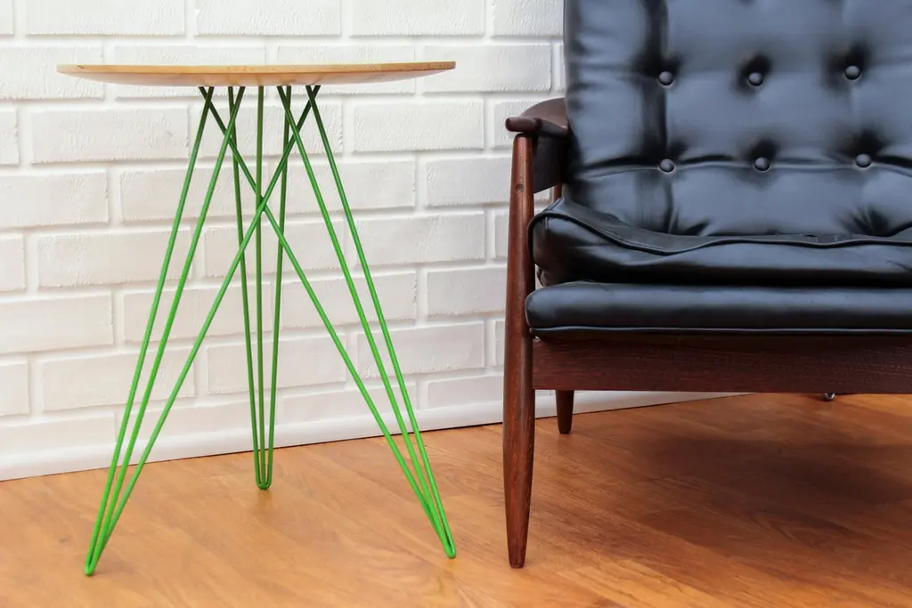 Hudson Hairpin Side Table With Wood Inlay Maple Green