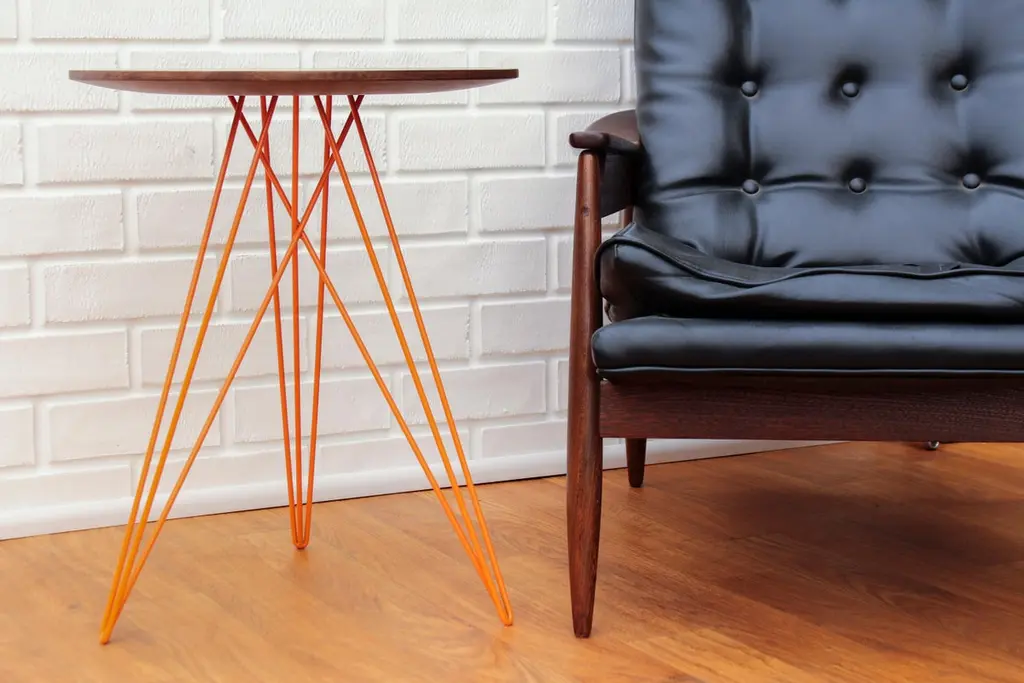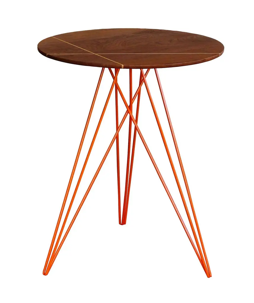 Hudson Hairpin Side Table With Wood Inlay Walnut Orange