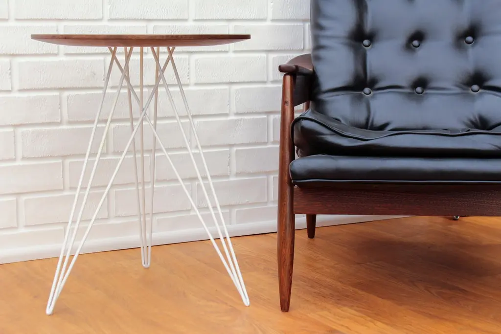 Hudson Hairpin Side Table With Wood Inlay Walnut White