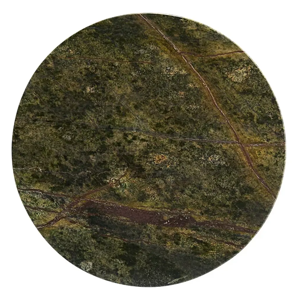 The Icarius Accent Table from Arteriors is a gripping focal point, using precise geometry to showcase its natural material's deep color palette and swirling details. A minimalist silhouette makes this an easy choice in the modern or contemporary space. The table feels balanced as a cone base presents a low-profile circular tabletop. The wide surface of the base and tabletop reveals dark and light tones that create a painterly effect with textural marks. The tabletop sports a reflective surface that accentuates the look of placed décor.