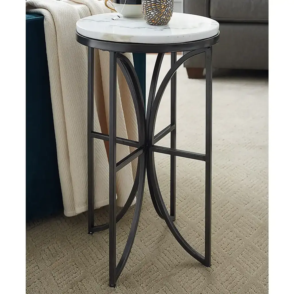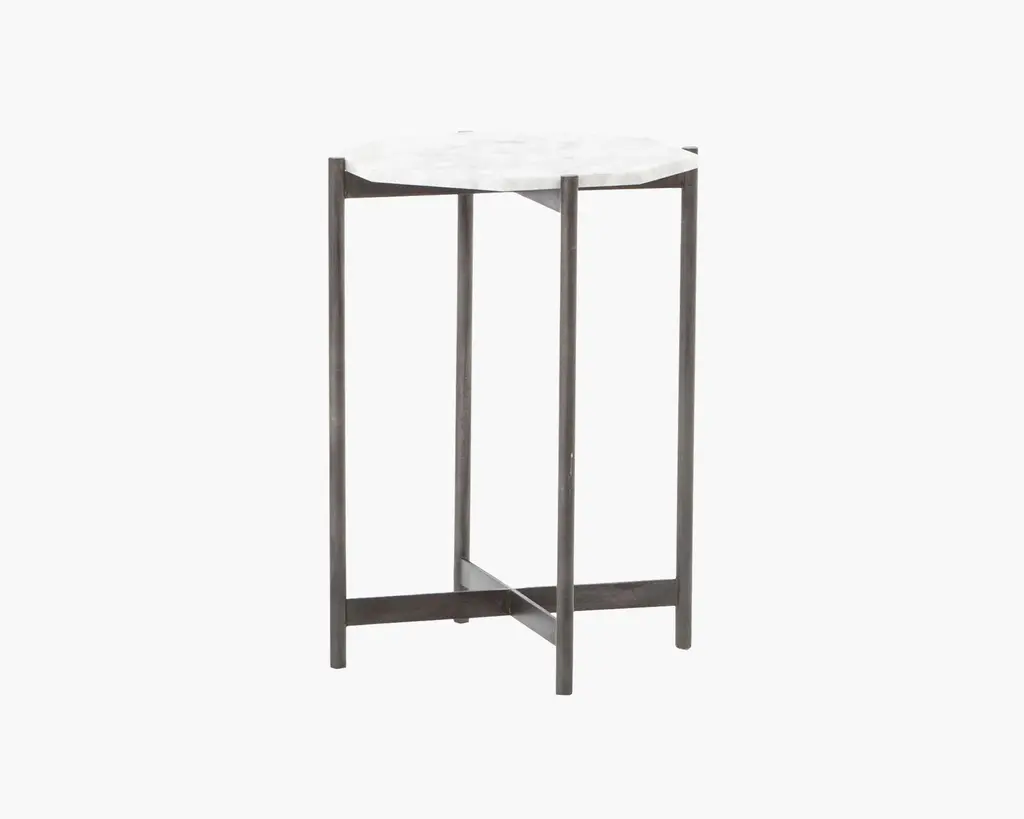 The Impact Small Round Accent Table seamlessly blends contemporary design with timeless elegance. Crafted with a sturdy metal base and adorned with a luxurious marble top, this end table exudes sophistication and durability. Its round shape adds a touch of modern flair to any living space, while the marble surface offers both style and practicality. Elevate your decor with this exquisite piece that effortlessly combines form and function.