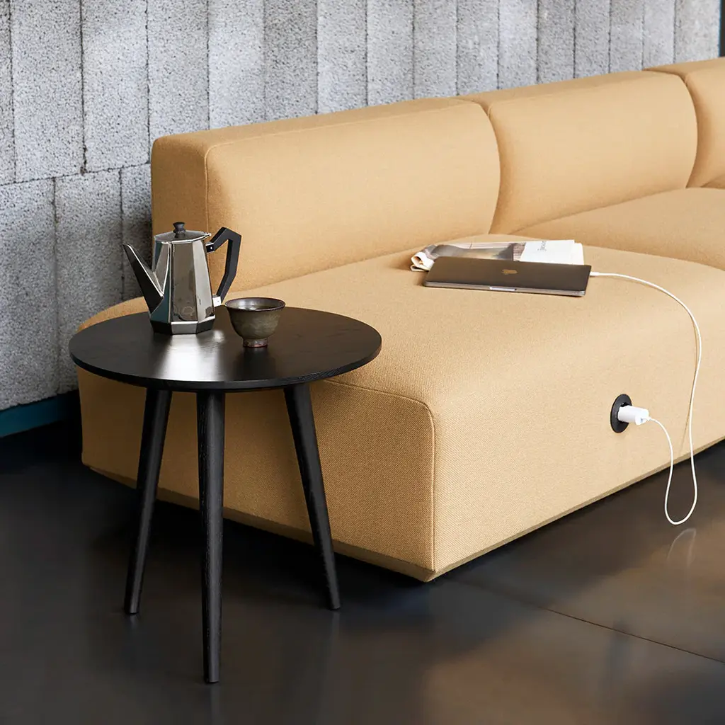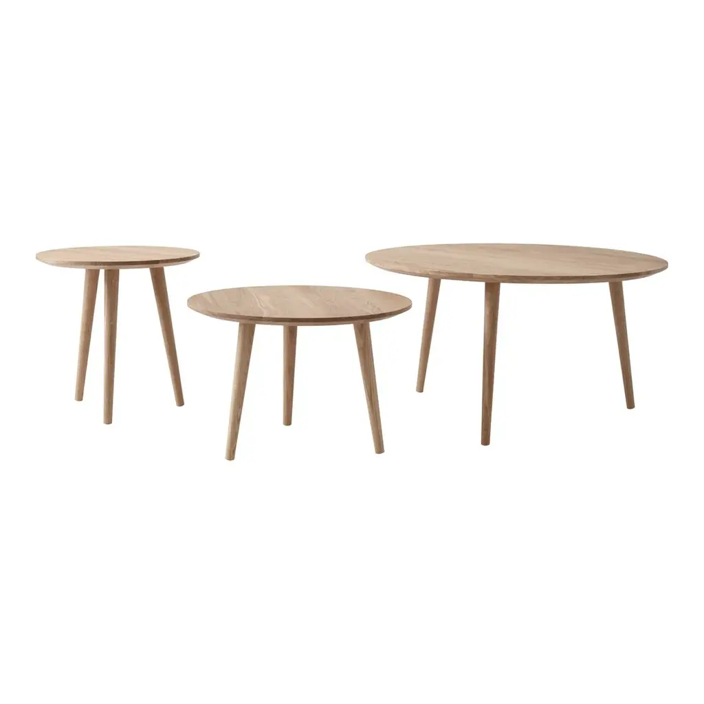 Sitting within the larger In Between series, this lounge table carefully echoes many aspects of the In Between chair, from its gentle curvature to the outward splay of its legs. It is available in two heights and comes in three finishes: black lacquered oak; white oiled oak; and smoked oiled oak.