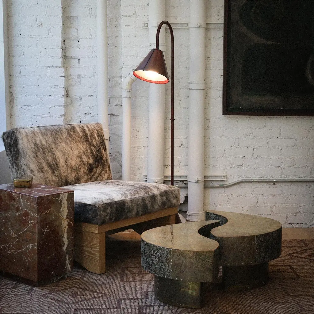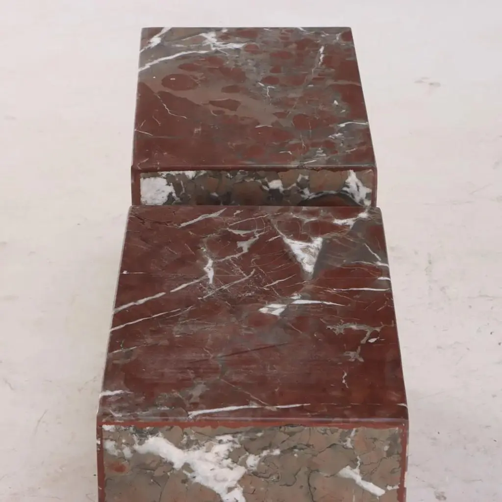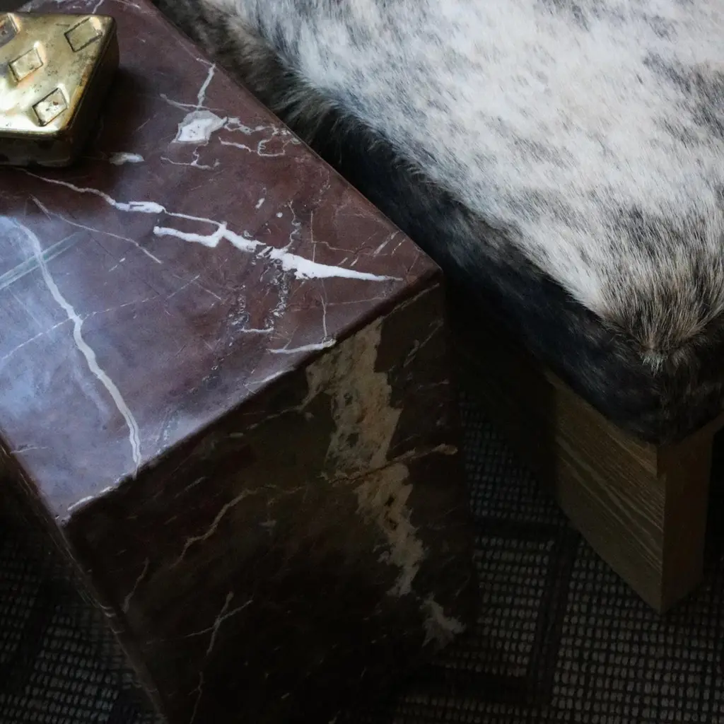 A sculptural statement of pure materiality, this vintage pillar table in Rosso Levanto marble is a rare find for the Lemieux Et Cie Collection. With its deep oxblood hues and intricate artistic veining, the stone’s rich geological history is on full display, exuding both strength and beauty. The monolithic form lends itself to a myriad of uses—pedestal, side table, or striking standalone piece—bringing an artful presence to any interior. A true collector’s piece, with the timeless design of European modernism.Priced individually.