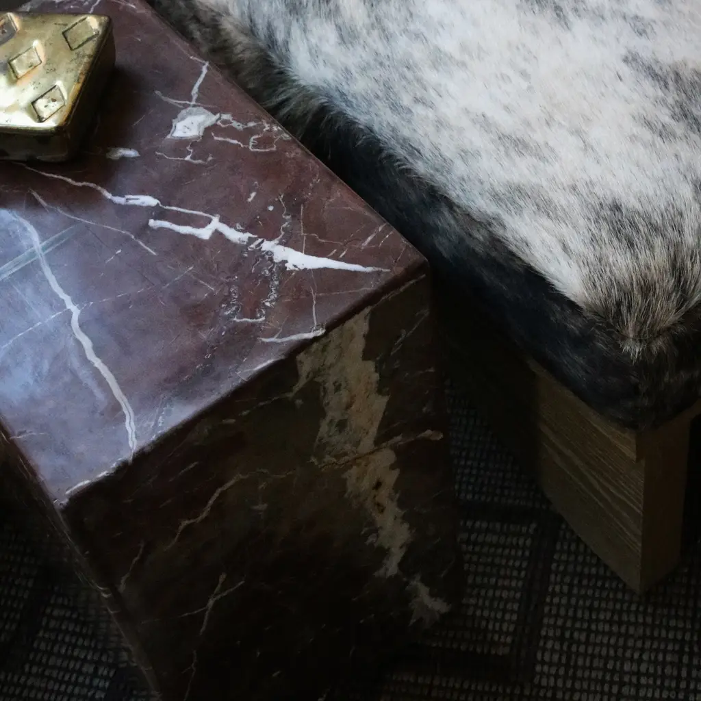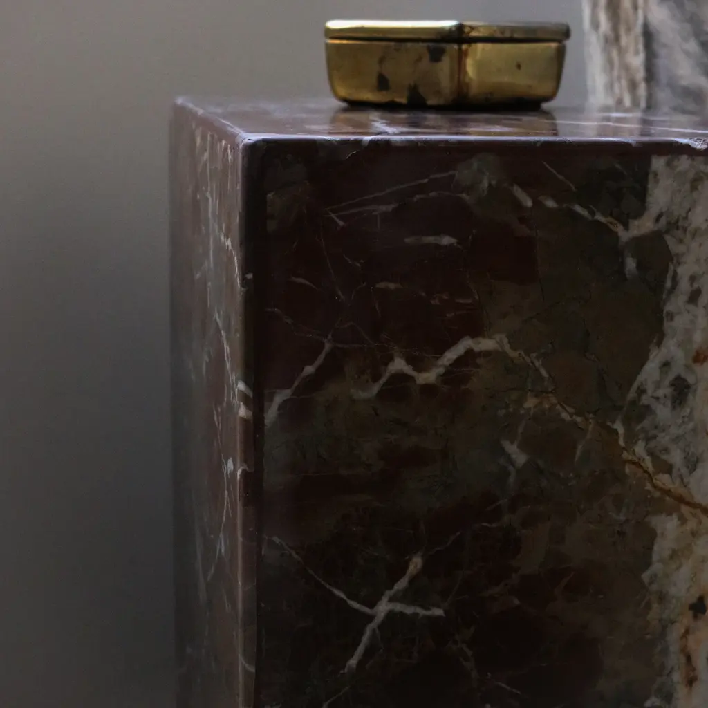A sculptural statement of pure materiality, this vintage pillar table in Rosso Levanto marble is a rare find for the Lemieux Et Cie Collection. With its deep oxblood hues and intricate artistic veining, the stone’s rich geological history is on full display, exuding both strength and beauty. The monolithic form lends itself to a myriad of uses—pedestal, side table, or striking standalone piece—bringing an artful presence to any interior. A true collector’s piece, with the timeless design of European modernism.