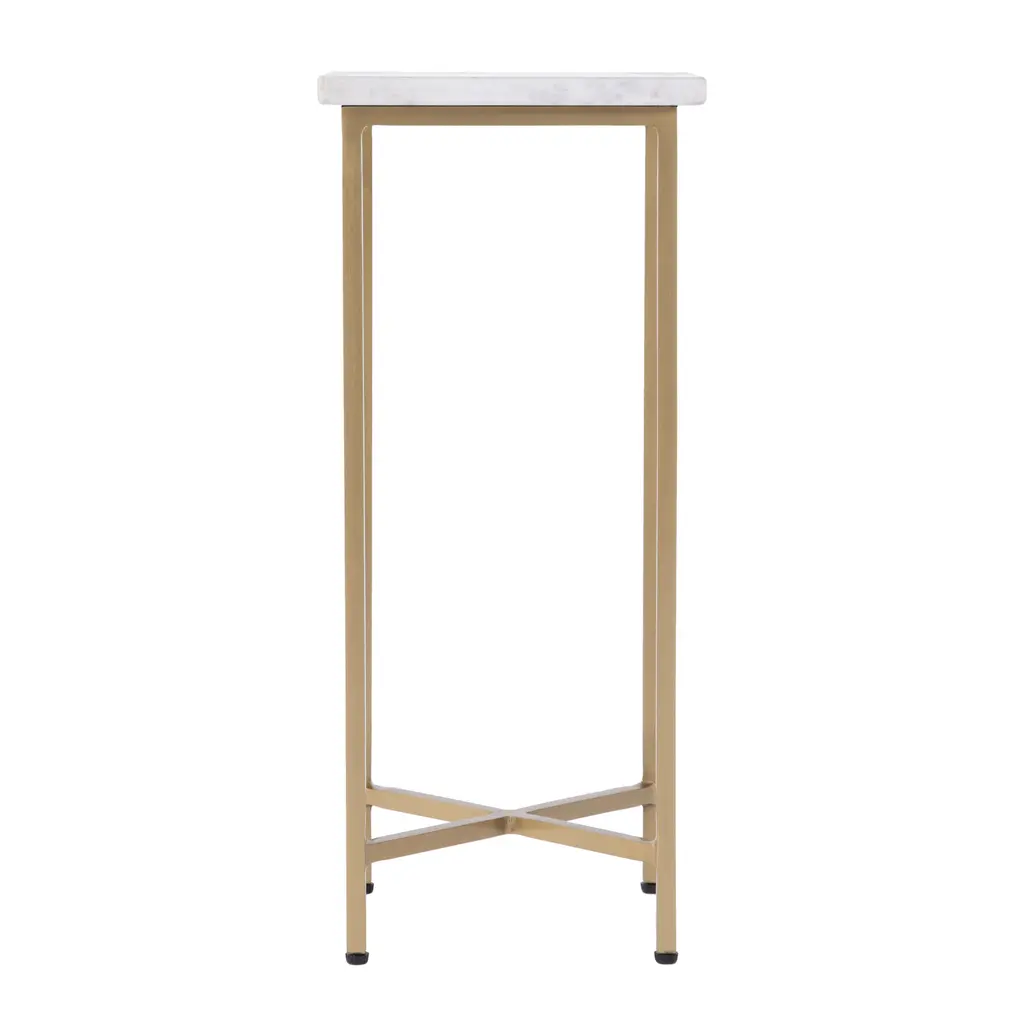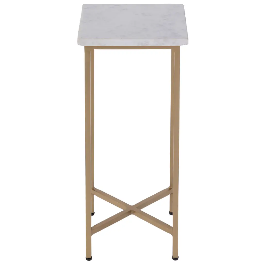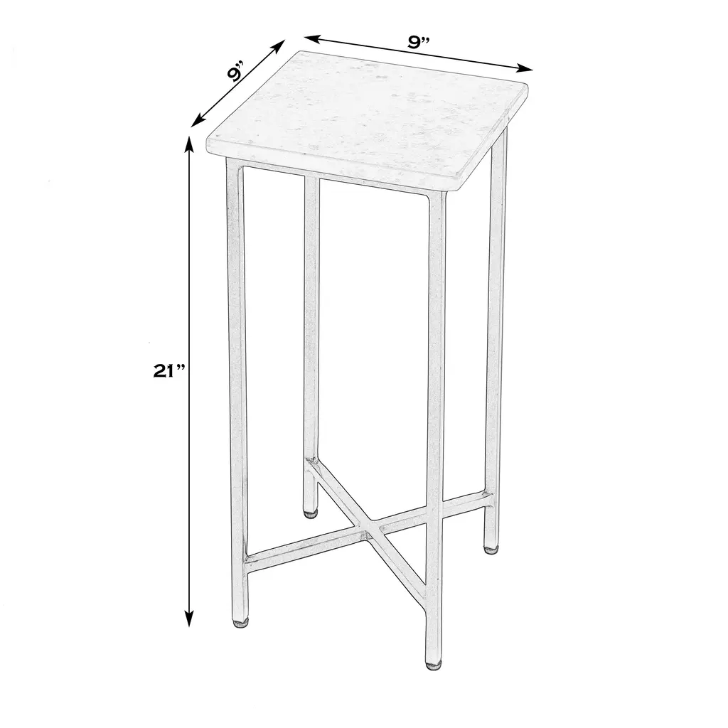 The Indigo 9 in. W Square Marble and Iron End Table effortlessly combines modern sophistication with timeless elegance. With its delicate marble top, it rests gracefully on a sturdy iron base, radiating refined charm. The compact square shape and minimalist design make it a versatile statement piece, adding both glamour and functionality to any room.