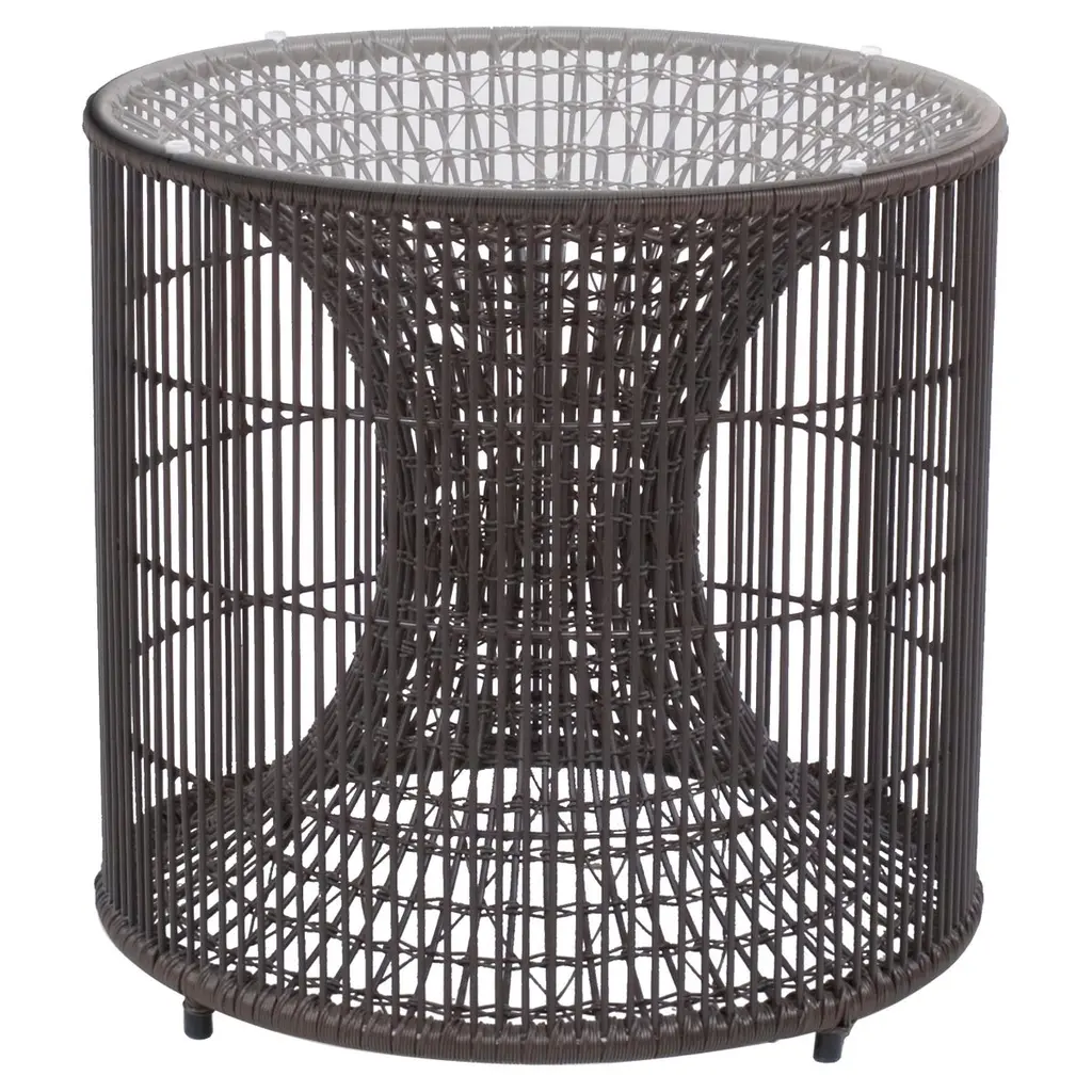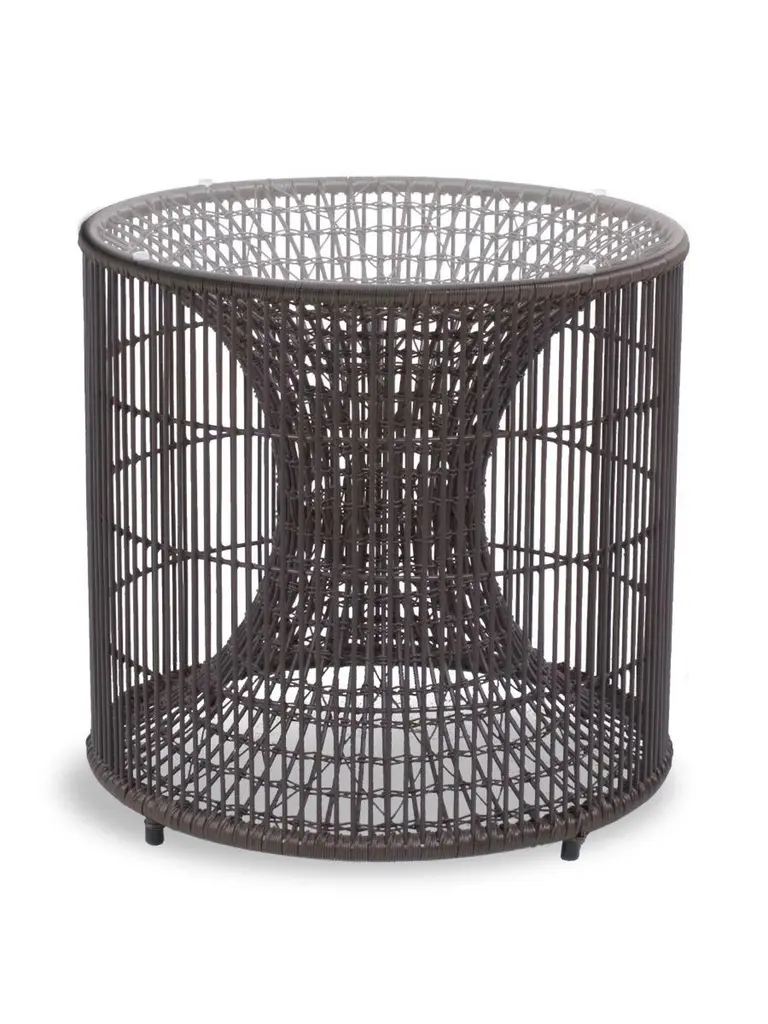 Amaya end table by Kenneth CobonpueMaterials: Abacca. Steel. Glass.Dimensions: Diameter 51 cm x height 49cmInspired by fish traps, the Amaya tables resemble a vortex enclosed within a cylinder. While the indoor version is crafted with abaca and steel, the outdoor version is made with polyethylene and steel.Also available in other sizes.Designer's BiographyKenneth Cobonpue is a multi-awarded furniture designer and manufacturer from Cebu, Philippines. His passage to design began in 1987, studying Industrial Design at the Pratt Institute in New York. While completing his studies, he apprenticed for a leather and wood workshop near Florence, Italy. He went on to study Furniture Marketing and Production at the Export-Akademie Baden-Württemberg in Reutlingen, Germany, under a private and state scholarship program, and subsequently worked in Bielefeld and Munich.Kenneth returned home to Cebu in 1996 to manage Interior Crafts of the Islands, Inc., a furniture design and manufacturing company founded by his mother Betty Cobonpue in 1972. Discovering that modern design could have a new face using natural fibers and materials, Kenneth created pieces of functional art, offering an alternative to the Western definition of modern design. Today, the Kennethcobonpue brand has become known globally for its unique designs and extensive roster of clientele, including Hollywood celebrities and members of royalty.With his masterful way of integrating nature, traditional craft and innovative technologies, designer and creative director Kenneth Cobonpue has earned international awards and recognition for his creative, organic, and expressive pieces. Working closely with some of the world’s leading designers, from household names to emerging talents, Kenneth has been pushing the envelope for design in the Philippines and sharing his vision to a global audience. Awards to his credit include five Japan Good Design Awards, the grand prize at Singapore International Design Competition, the Design for Asia Award of Hong Kong, the American Society of Interior Design Top Pick selection and the French Coup de Coeur award. Several of his designs were selected for several editions of the International Design Yearbook published in London and New York. Phaidon’s book entitled “& FORK” underscores Kenneth’s position as a leader of a new movement incorporating new technologies with crafts. In 2007, TIME magazine called him “rattan’s first virtuoso”. Kenneth was named the Designer of the Year in the first edition of Maison et Objet Asia held in March 2014 in Singapore.Kenneth reveals new work each year in the design shows from Milan to New York, and he speaks regularly about Southeast Asian design all over the world. He has also appeared in European television and in countless international magazines and newspapers around the world. Various Cobonpue designs have also appeared in full-length feature films and television, such as Oceans 13 and CSI.