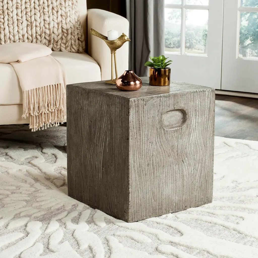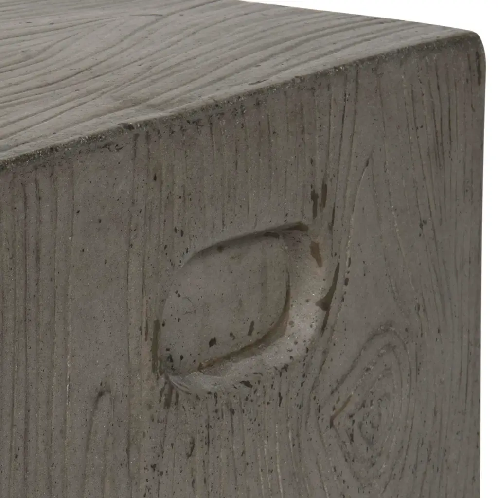 With a stylistic provenance that includes the bold lines of Cubism and Corbusier’s intellectual modernism, this contemporary concrete accent table is a design classic. Crafted with durable concrete in a rugged dark grey hue, it instantly refreshes any space. Perfect for indoor and outdoor use. Store outdoor furniture indoors or cover well when not in use. Remove wooden furniture from standing water. Dust regularly with small brush or vacuum. Spills should be taken care of immediately before they harden or stain with a slightly dampened sponge. Do not use bleach solutions.