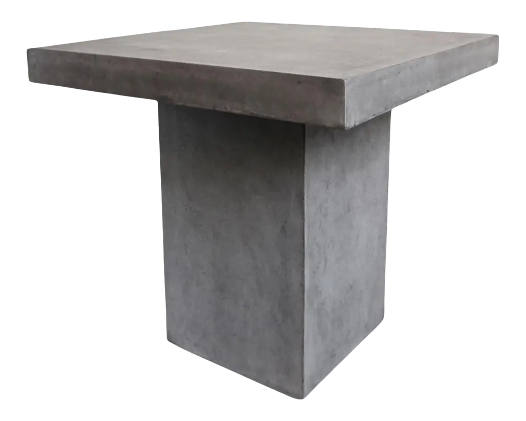 The exquisite furnishings, accessories and artworks at the Noguchi Museum inspired this contemporary dark grey accent table. it's tranquil aesthetic combines a polished geometric form with the strength and durability of concrete to create a modern masterpiece. Perfect for indoor and outdoor use. Store outdoor furniture indoors or cover well when not in use. Remove wooden furniture from standing water. Dust regularly with small brush or vacuum. Spills should be taken care of immediately before they harden or stain with a slightly dampened sponge. Do not use bleach solutions.