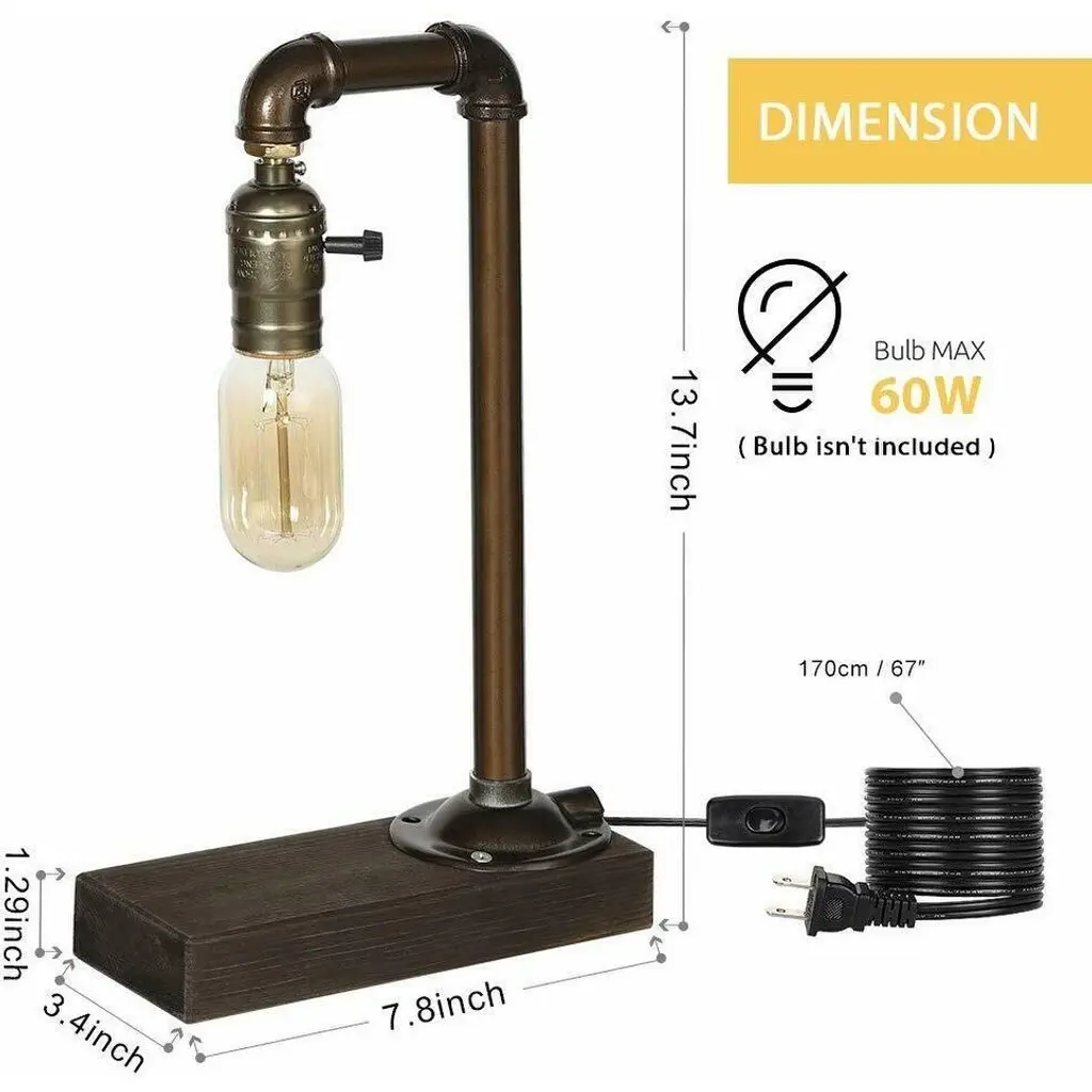 Add a touch of vintage charm to your home decor with this Retro Vintage Table Lamp. The lamp's industrial loft style design features bronze-colored metal and a retro water pipe look, evoking nostalgia and industrial inspiration in any room it is placed in. This lamp is versatile and can add personalized charm to any living space, whether it's in the bedroom, living room, pub, coffee bar, office desk, or bedside table. Bulb not included.Features:Specifications:Package Content: