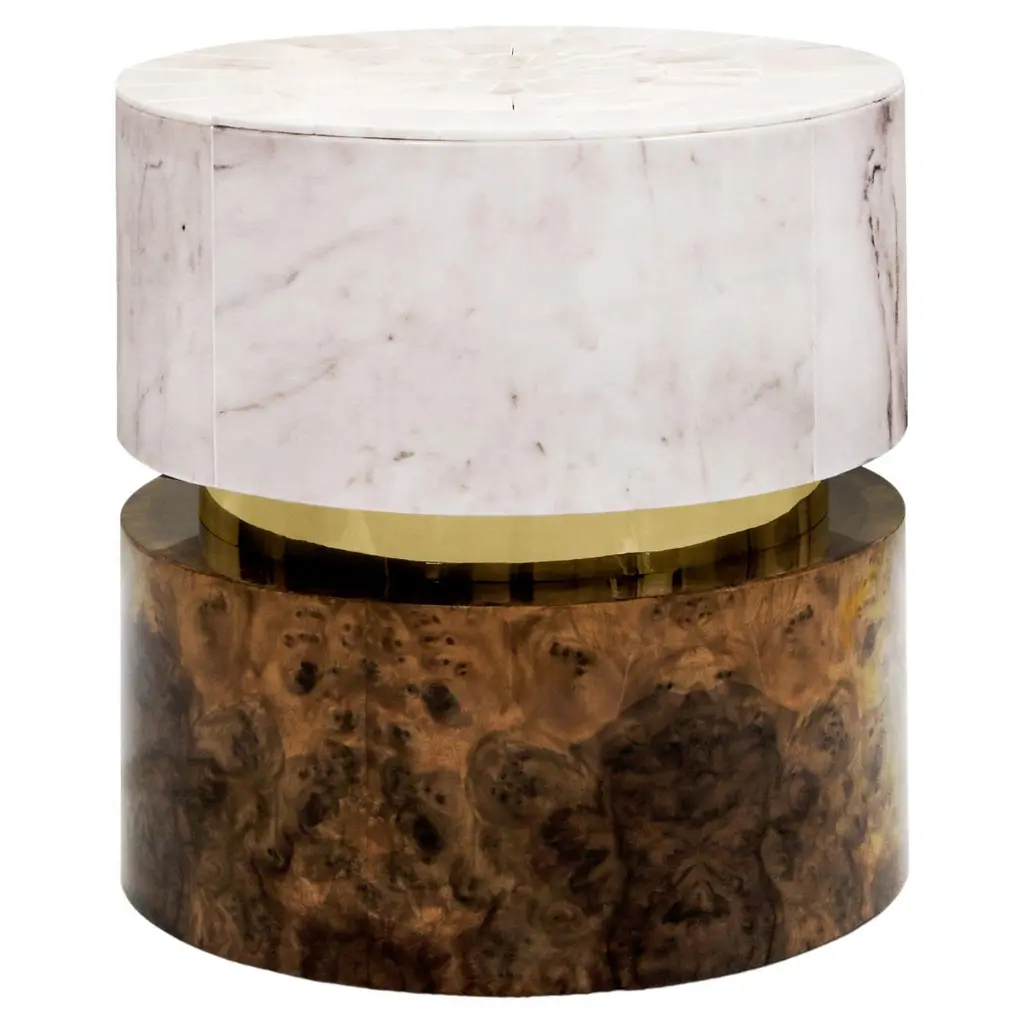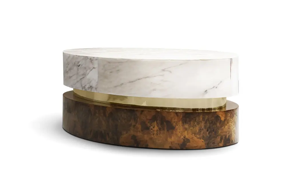 Infinity Center Table by Memoir EssenceDimensions: D 53 x W 100 x H 35 cm.Materials: Polished brass, walnut root and white marble.Also available in brushed brass. Please contact us.This center table presents an exquisite material selection that makes it unique for the wood texture and marble imponent look. Infinity center table is perfect for your living or bedroom.Memoir Essence Interiors has been writing its memoirs day by day, inspired in every detail lived through a feminine world, this world brings the most delicate imaginary. Jewelry, fashion, architecture, music, art and materials are Memoir’s inspirations to materialize a collection of design pieces of furniture, upholstery, lighting and accessories.The use of noble materials like marble, brass, veneers, gold and silver leaf, Swarovski crystals as other decorative and fine materials, combined with handwork techniques as casted brass, hand-whickered fabric ribbons, gold leaf appliance, marble cutted and puzzled pieces, provide the needed essence to tell memoirs through the designed pieces and the interiors they fulfill.This collection mostly handmade and focused on details and material nobility is made in Portugal, bringing handwork techniques that are part of Portuguese history, applied in a current and differentiated way, delivering timeless pieces to your special projects. Acquire Memoir is the opportunity to travel through the feminine essence over design and experience a unique “memoir” of timelessness and exclusivity.Writing is first chapter in 2016, after a journey of inspirational research, forecasting and design, Memoir made its first appearance at Maison et Objet, Paris.Since then Memoir is “writing” memories adding new materials, designs, techniques and appearances around the world, as in Paris, London or UAE.Memoir will continue this journey, always motivated by the inspiration possibilities in the many delicate details found in feminine world.Tell your memoires with this collection and be a memorialist yourself…