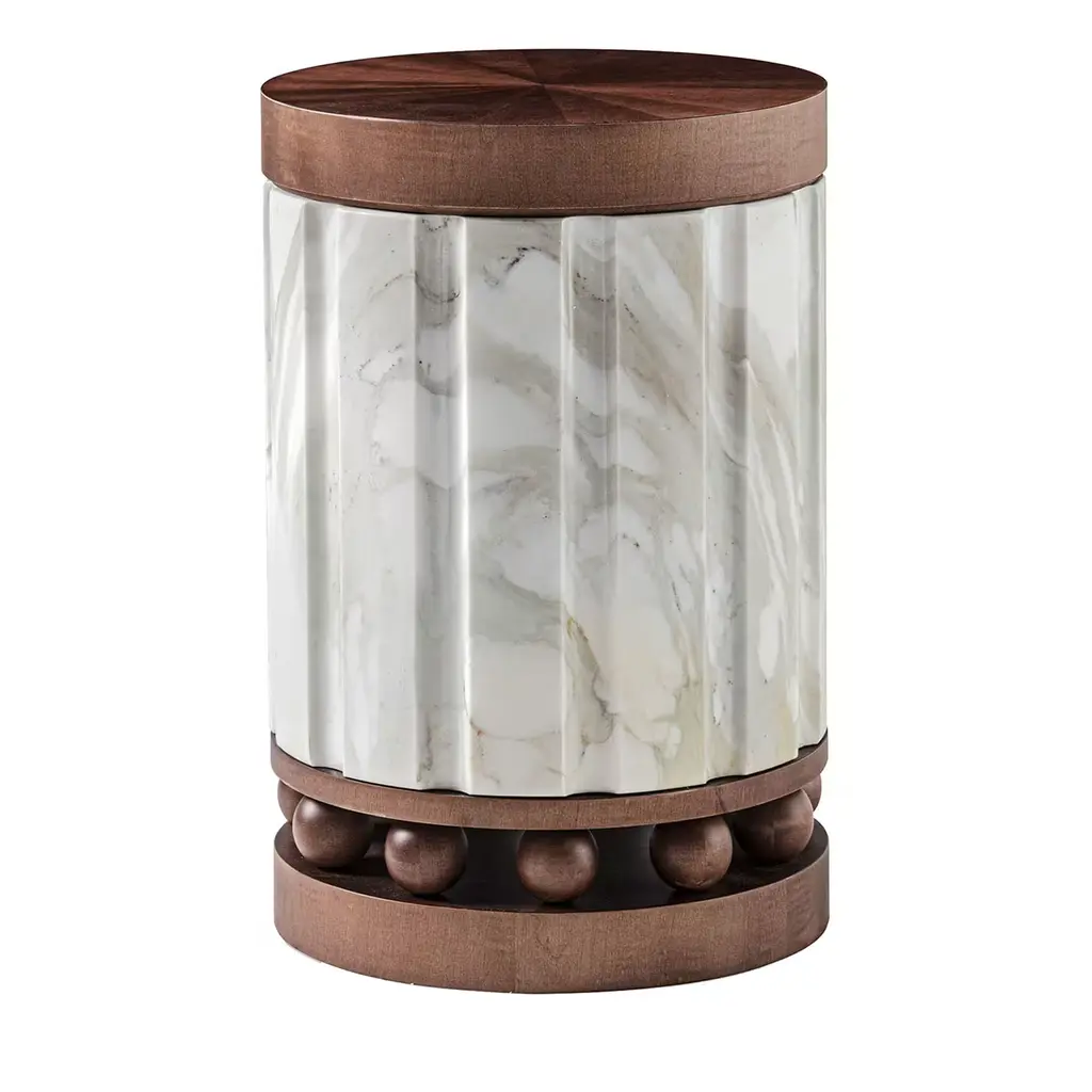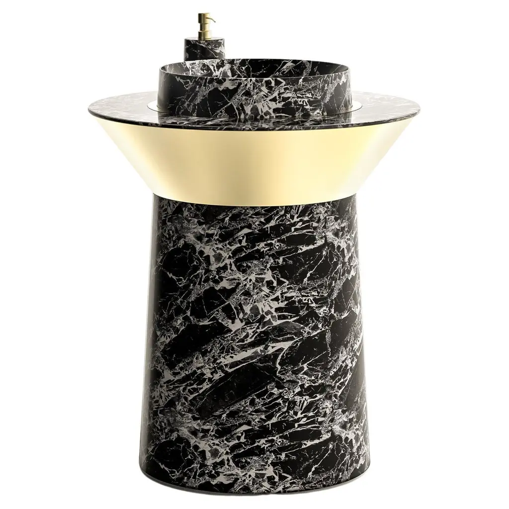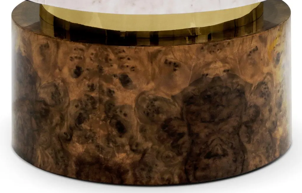 Infinity Side Table by Memoir EssenceDimensions: D 50 x W 50 x H 50 cm.Materials: Polished brass, walnut root and white marble.Also available in brushed brass. Please contact us.The infinity Side Table captures the traditional marble sophistication with modern design. Combining materials as high gloss walnut root complemented by a hoop in gold brass, which make this piece a statement.Memoir Essence Interiors has been writing its memoirs day by day, inspired in every detail lived through a feminine world, this world brings the most delicate imaginary. Jewelry, fashion, architecture, music, art and materials are Memoir’s inspirations to materialize a collection of design pieces of furniture, upholstery, lighting and accessories.The use of noble materials like marble, brass, veneers, gold and silver leaf, Swarovski crystals as other decorative and fine materials, combined with handwork techniques as casted brass, hand-whickered fabric ribbons, gold leaf appliance, marble cutted and puzzled pieces, provide the needed essence to tell memoirs through the designed pieces and the interiors they fulfill.This collection mostly handmade and focused on details and material nobility is made in Portugal, bringing handwork techniques that are part of Portuguese history, applied in a current and differentiated way, delivering timeless pieces to your special projects. Acquire Memoir is the opportunity to travel through the feminine essence over design and experience a unique “memoir” of timelessness and exclusivity.Writing is first chapter in 2016, after a journey of inspirational research, forecasting and design, Memoir made its first appearance at Maison et Objet, Paris.Since then Memoir is “writing” memories adding new materials, designs, techniques and appearances around the world, as in Paris, London or UAE.Memoir will continue this journey, always motivated by the inspiration possibilities in the many delicate details found in feminine world.Tell your memoires with this collection and be a memorialist yourself…