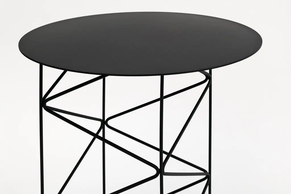 Inspired by the high-tech architectural movement, the INOS side table celebrates the aesthetic value of its metal structure. The stark lines of the welded steel frame create an ever-shifting geometry of light and shade as one moves around the piece.