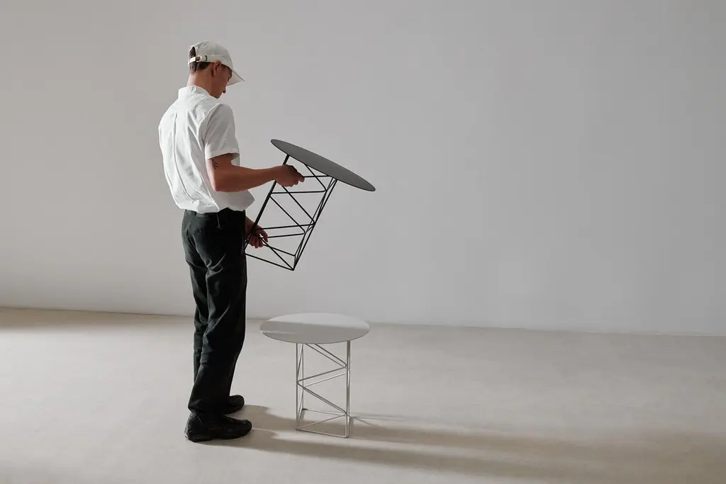 Inos Side Table, Geometric, Modern, Welded Steel / Powder-Coat Pale White