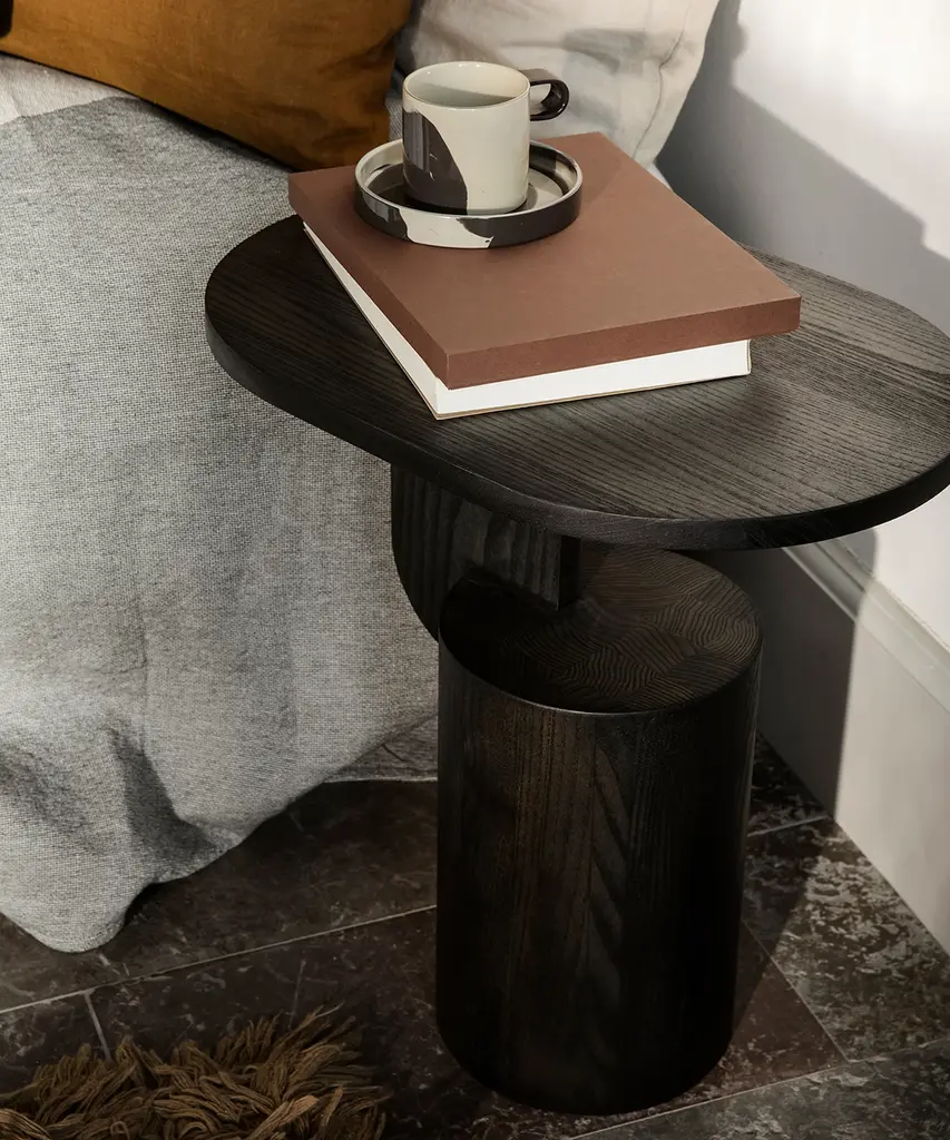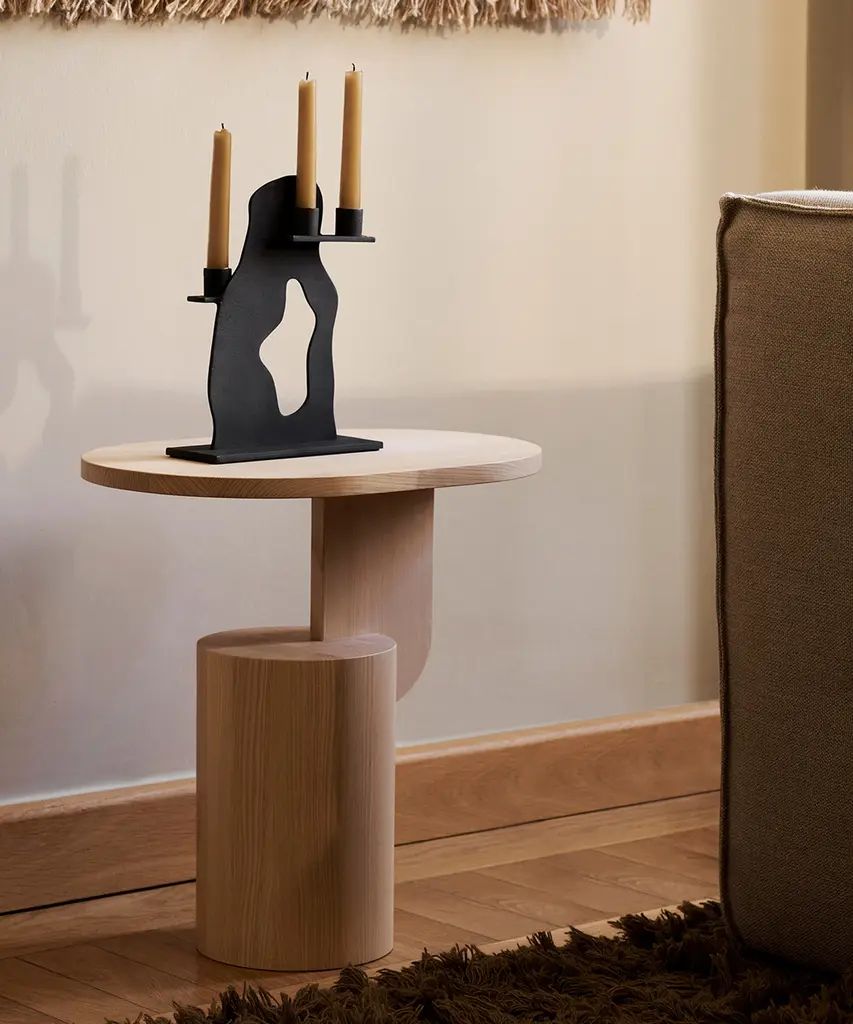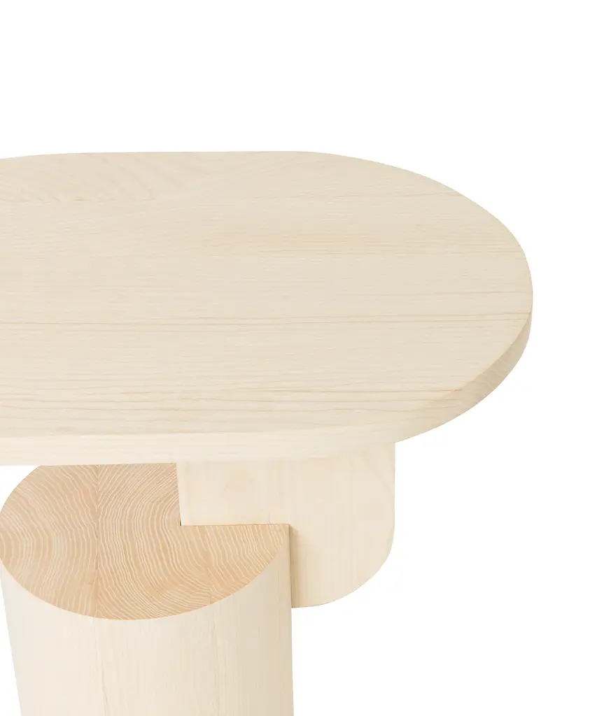 Crafted from FSC™-certified solid ash, this design forms a sturdy yet sculptural side table. It expresses the meeting of the heavy cylinder base and the light oval top, seemingly floating on the small, geometric joint. The table is a subtle piece of art in your home, and its small size makes it perfect for rooms of all sizes. Designed and produced by the Copenhagen-based studio Ferm Living.