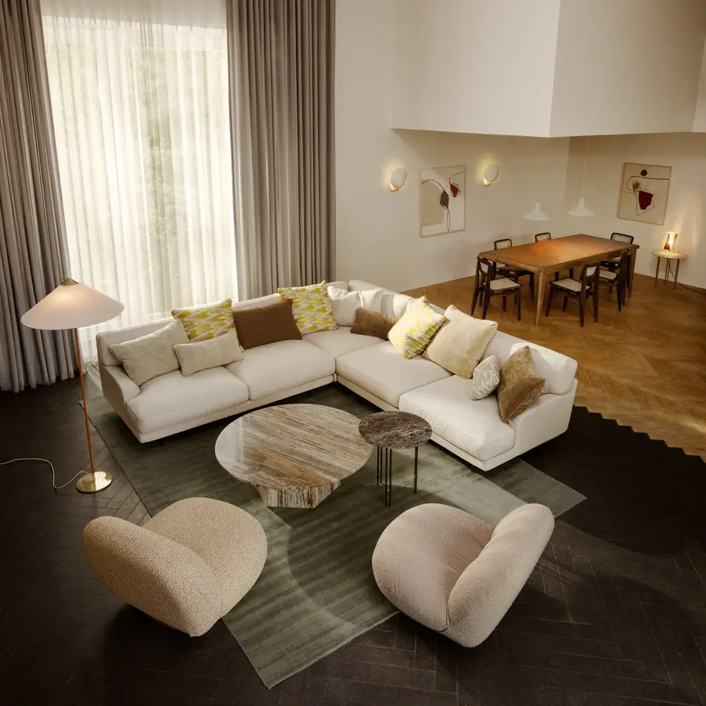 The IOI Coffee Tables by GamFratesi are a celebration of Italian materiality, featuring solid brass and gray Emperador and white Carrara marble. The use of marble anticipates a growing desire for the honesty and authenticity of organic materials. The careful selection of colors and textures keeps its materiality alive in the final design and individual stones are chosen for their veining and striations, giving each table a unique expression of its own. Drawing on geometric Art Deco references with a contemporary design language, the collection explores the empty space between the physical form as much as the form itself. The IOI Coffee Tables share a common ‘sticks and sphere†motif, reflected in the shape of the letters that form their name, pronounced ‘i-o-i.†The tableâ€s twin legs are linked by a small solid brass sphere, that works as both a functional ‘spacer†to strengthen the dual pipe-like legs, and as an intimately considered signature detail or ‘pause†that emphasizes both its own materiality and the careful attention paid to the spaces between the elements of each piece. At three different heights and diameters, the IOI Coffee Tables work well in pairs, groups and even clusters or alone as a single table alongside GUBIâ€s extensive range of lounge chairs and sofas.