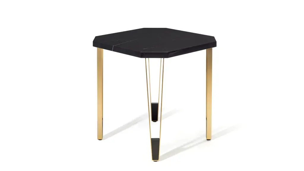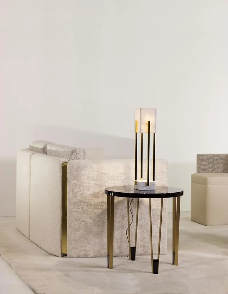 Ionic Square Nero Marquina Marble Side Table by InsidherLandDimensions: D 55 x H 55 cm.Materials: Nero marquina marble, brushed brass.29 kg.Other materials available.Ionic is one of the three orders of classical architecture developed at the ancient Greek temples. Contrary to the Doric, the oldest and most massive order, the columns of Ionic and Corinthian orders were composed by three elements: base, shaft and capital. Being symbols of worship, as centuries passed by, many of the impressive temples were destroyed or simply collapsed.The remains of Ionic temples with their beautiful surviving columns motivated the creation of the Ionic side tables, each one with tripartite columns missing one of its elements. This approach of an incomplete Ionic column presents uniquely the non ornamented forms of the base and capital as the missing shaft has been replaced by a modern metal structure that embraces the two separated elements.Countering the construction process of ancient temples, the Ionic side tables have a delicate tapered design that allows less contact with the floor, in allusion to what would be the use of free modern forms in the tripartite construction of a classical temple.Created by Architect Joana Santos Barbosa in 2012, InsidherLand is a Portuguese brand of exclusive design. Drawn with the signature of the creator, the impressive range of contemporary luxury furniture, lighting, upholstery and accessories are connected to her personal memories and have been highlighted for their innovative and soulful designs.Joana explores several influences from travels around the world to define her own Land as a place that allows her to translate her perceptions into objects of art.The essence of InsidherLand is presented by two inspiring collections. Beyond Memory Collection is deeply influenced by organic forms of nature, legends and traditional cultures, as for the Identity Collection is molded by forms of Architecture and Art. Both collections are designed as a dialog in which nature meets strong architectural lines to create relaxed and sophisticated interiors surrounded by natural materials and meaningful art pieces.Being positioned in strategic markets of high-end luxury decoration, InsidherLand team is proud of working with the best architects and interior design studios from all over the world who seek for handmade exclusive objects that arouse emotions and stand out in exquisite spaces.We are dedicated with love and enthusiasm into every creation to surprise a sensitive but demanding public. Using the expertise of traditional craft techniques, all creations are made by the hands of Portuguese master craftsmen and jewelers who wisely sculpt them in noble materials, finalizing every detail with elegance and perfection.