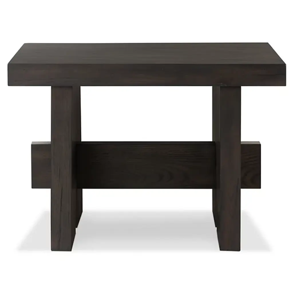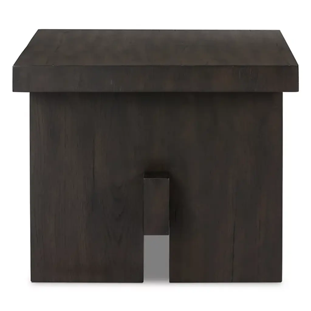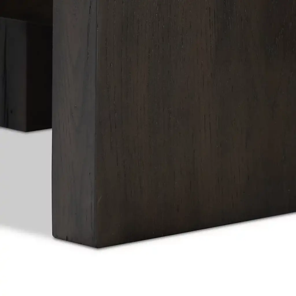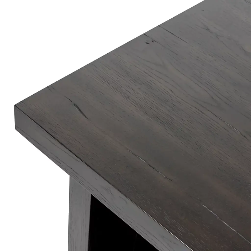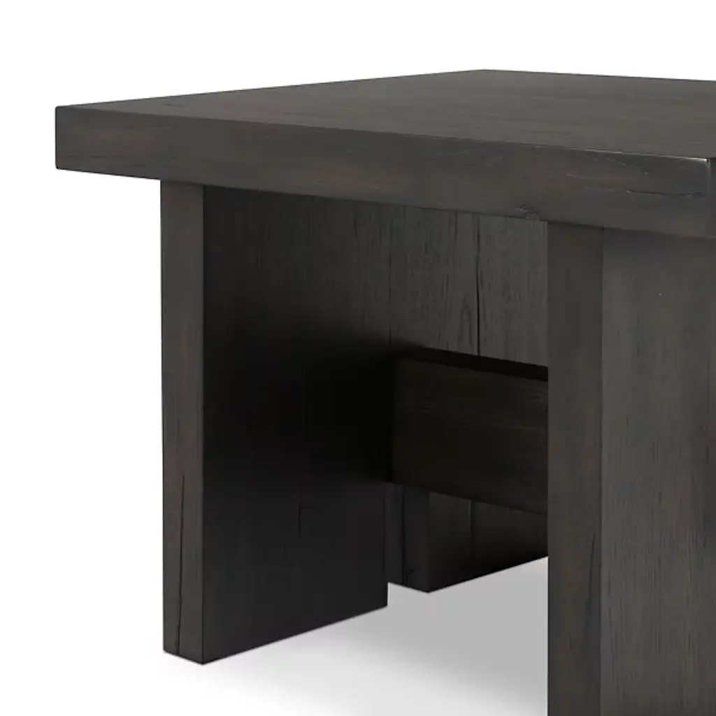Presenting the Isaac End Table from Four Hands, a clever creation crafted of smoked black oak, featuring a jointed connection construction that epitomizes a modern and elegant aesthetic. Each table showcases distinct knots and graining, enhancing its own character and rustic allure. Crafted with a thick oak veneer and solid oak material, it merges contemporary style with farmhouse and rustic modern influences, infusing distinctive style and dependable functionality into any living area and elevating the atmosphere of its environment.