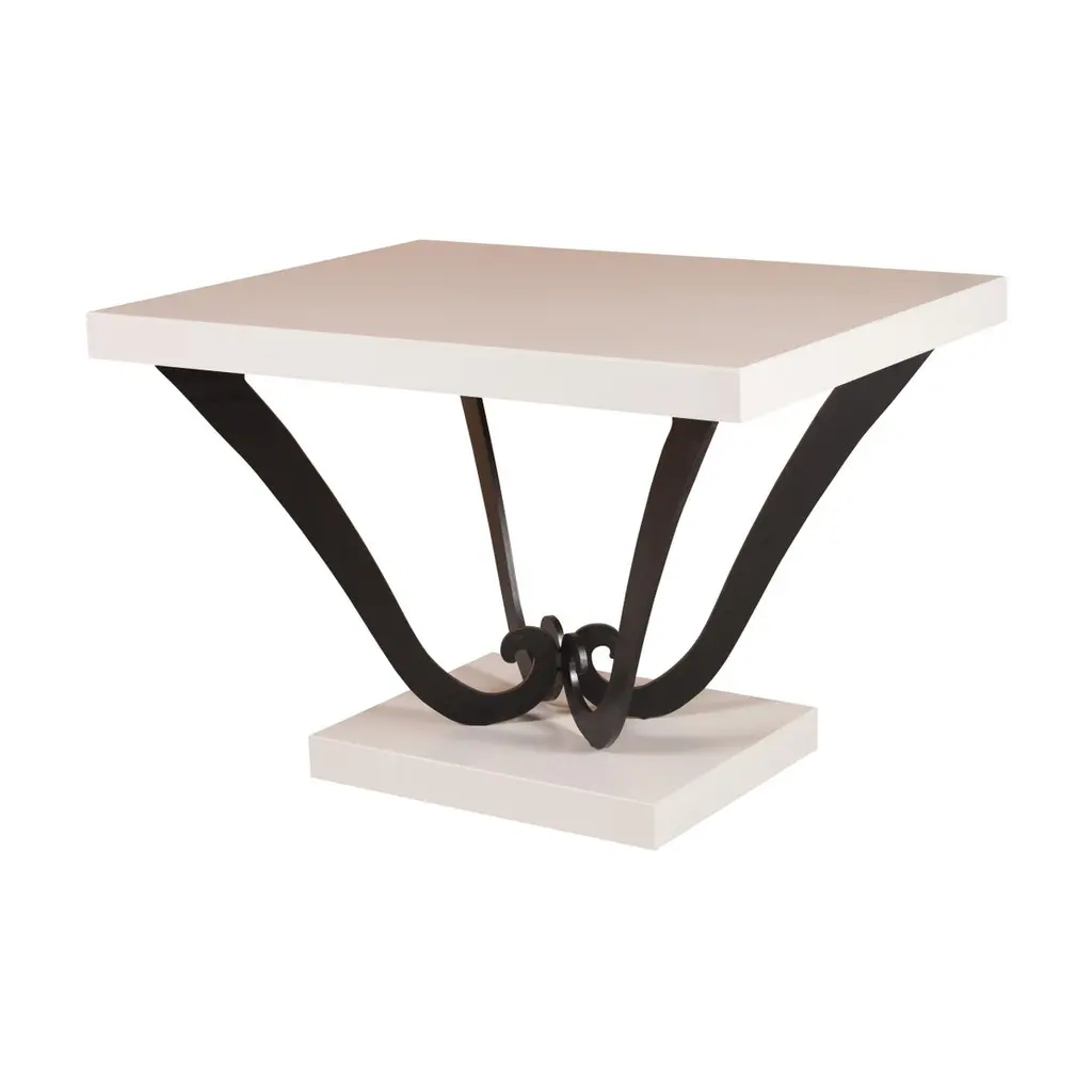 Designed by IC and realized by expert Italian artisans, this sophisticated, Art Deco inspired rectangular side table, features a wood table top supported by four metal legs set on a rectangular base.Finish: Plain Ivory and Black.Dimensions (cm): W 80, D 62, H 54.