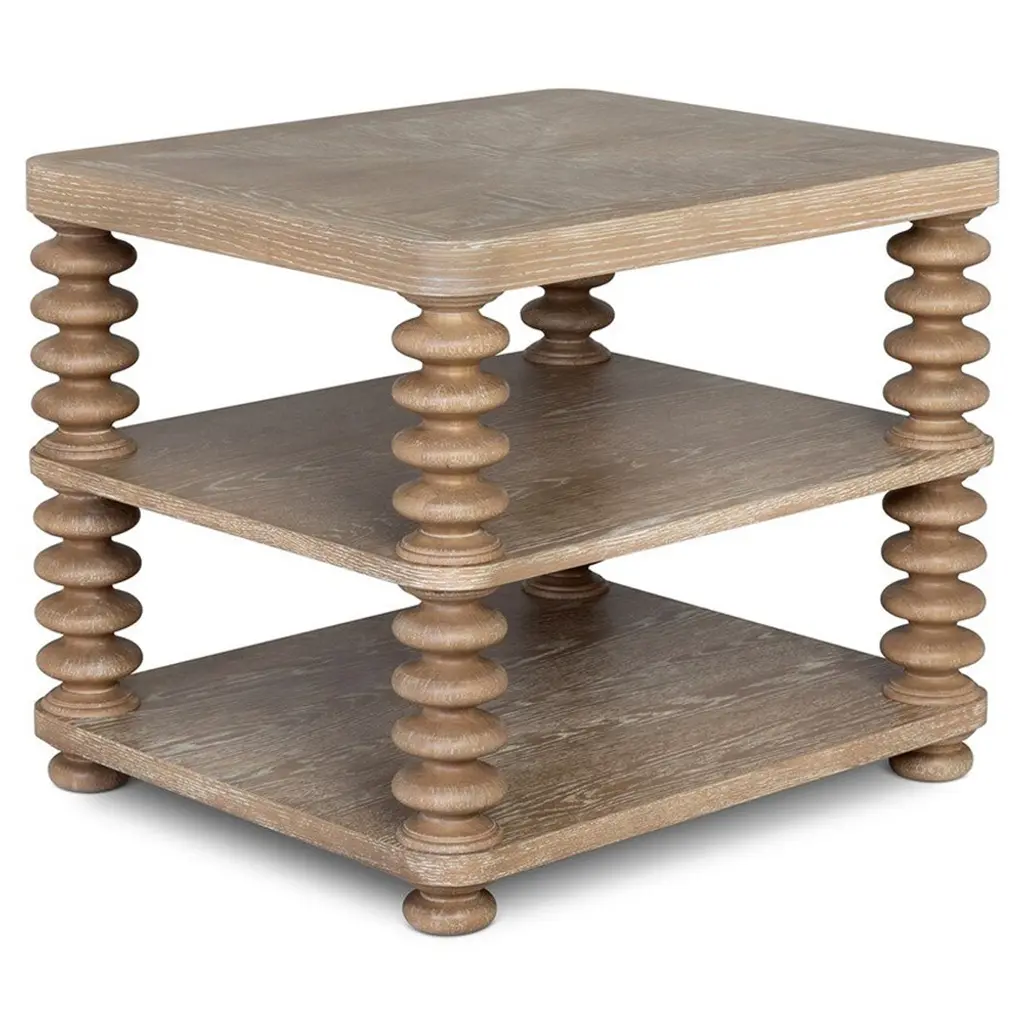 Isabella Updated Traditional Brown Oak Rectangular Spindle Side Table