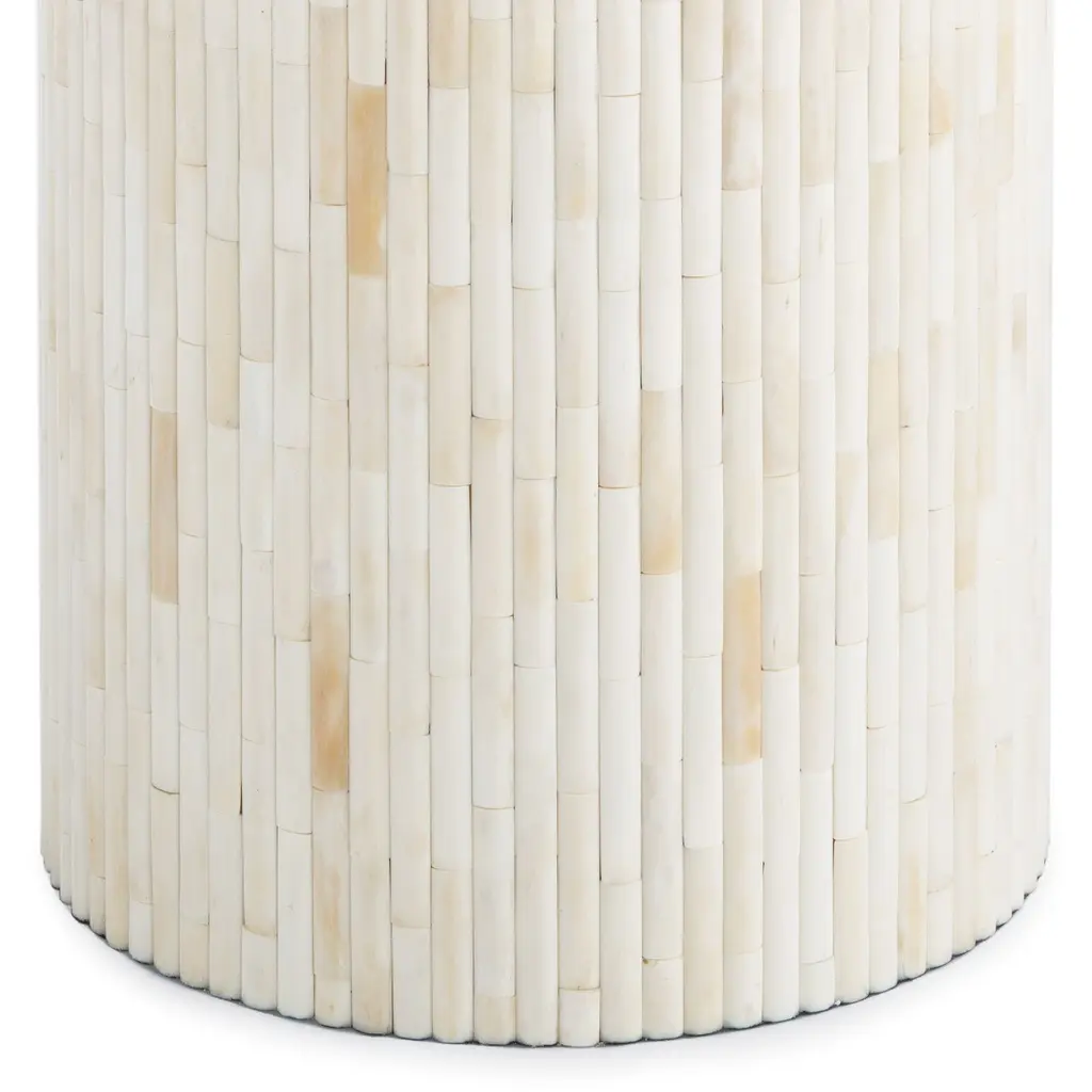 The artistry is in the details with the Isabelle Bone Side Table. Adorned with fluted details for dimension, natural textures and subtle variations in tone make each piece unique. Mixed materials open this piece up to endless styling possibilities from coastal boho to modern and contemporary.