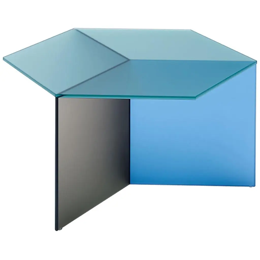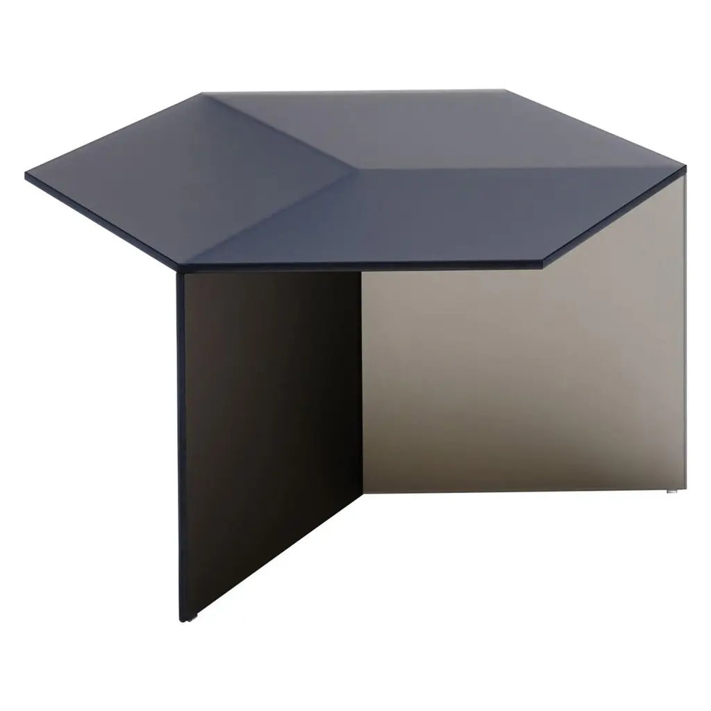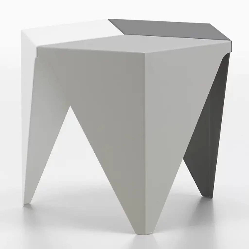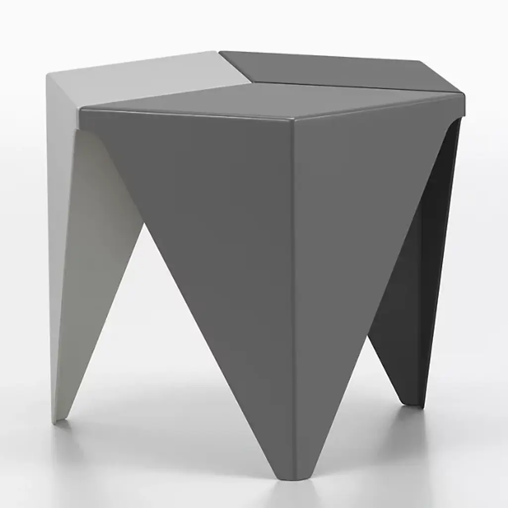 In the mid-1950s, designer and landscape architect Isamu Noguchi began experimenting with aluminum, a material that had become fashionable in interior design. In 1957, he conceived the Prismatic Side table, a design composed of three folded pieces of aluminum fastened together to create a hexagonal top that transitions into three legs. After developing several monochromatic variations, he designed these three versions in arrangements of three different shades of gray. Singularly, the Prismatic Side Table is a striking addition to your living room. Grouped together, several tables reveal kaleidoscope-like patterns. The Isamu Noguchi Prismatic Side Table is made of powder-coated aluminum and measures 14.75h x 16.25w x 16.25"d. Each table is sold separately. Both Isamu Noguchi and Vitra, the table’s manufacturer, have work in MoMA’s collection.