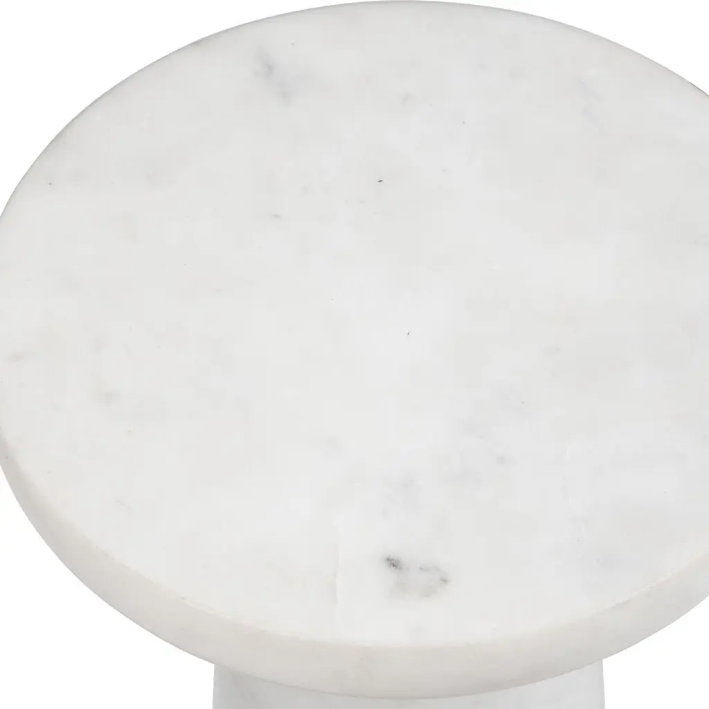 Embrace the allure of timeless elegance with this exquisite drink table, a masterpiece crafted entirely from luxurious marble. Its smooth, tapered pedestal base gracefully supports a round top, creating a harmonious silhouette that whispers sophistication and minimalism. The gentle gray veining dances across the pristine white surface, ensuring that each piece is a unique work of art, a testament to nature's beauty. This table effortlessly bridges the gap between contemporary and traditional interiors, making it a versatile addition to any space. Designed for both indoor and outdoor use, it invites you to indulge in moments of serenity and style, wherever your heart desires.