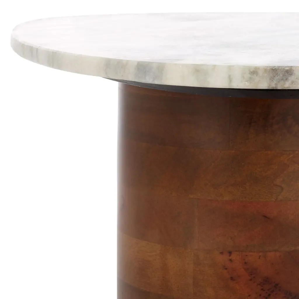 Isoldeel Marble Side Table, Off White Marble/walnut