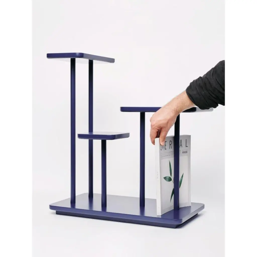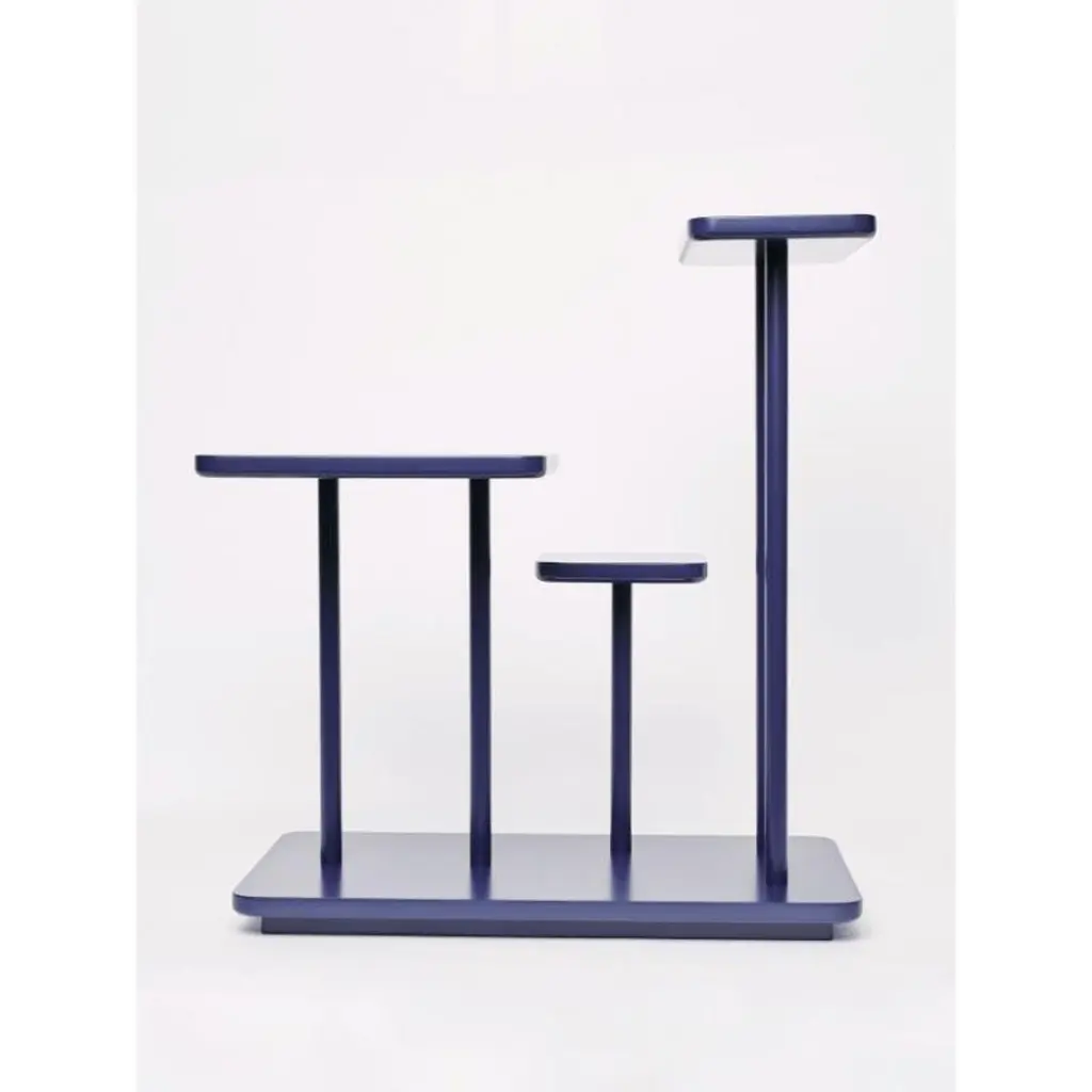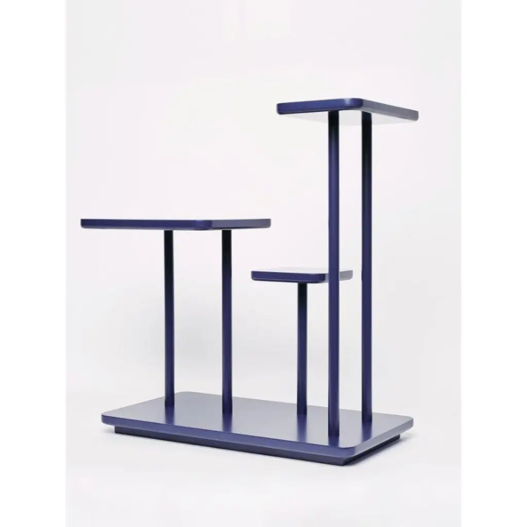 Isolette, end table, steel blue by Atelier FerraroDimensions: 55 cm x W 30 cm x H 62 cmMaterials: MDF/ woodAlso available: Telegrey and wood oiled colors,The elegant end table “Isolette” is a part of the “Isole” family of Atelier Ferraro. It displays a similar design principle as the coffee table “Isole”, on a smaller scale. The height of the surface elements is customizable, as to serve either as an accent beside a couch or an armchair – or as a repository in the hallway of your home. The simple system of assembly allows for fuss-free shipment, easy installment and variation according to the users’ specific needs.Atelier Ferraro is a design studio based in Munich focused on creating visually enthralling, intuitive objects of design fitted for the modern user. After studying architecture in Italy and Greece and obtaining a master’s degree, Emanuele Ferraro moved to Germany to work with a series of renowned architecture offices. There he was involved in projects ranging from big-scale commercial and residential buildings to the details of furnishing the interiors of offices and showrooms, offering an opportunity to further develop his passion for furniture and objects of design and hone his skills.