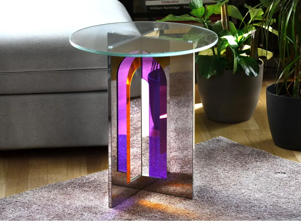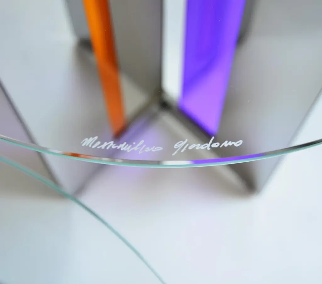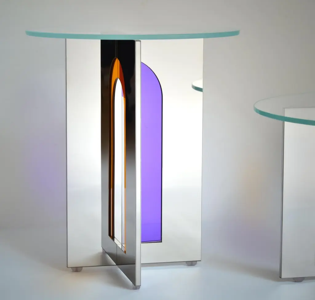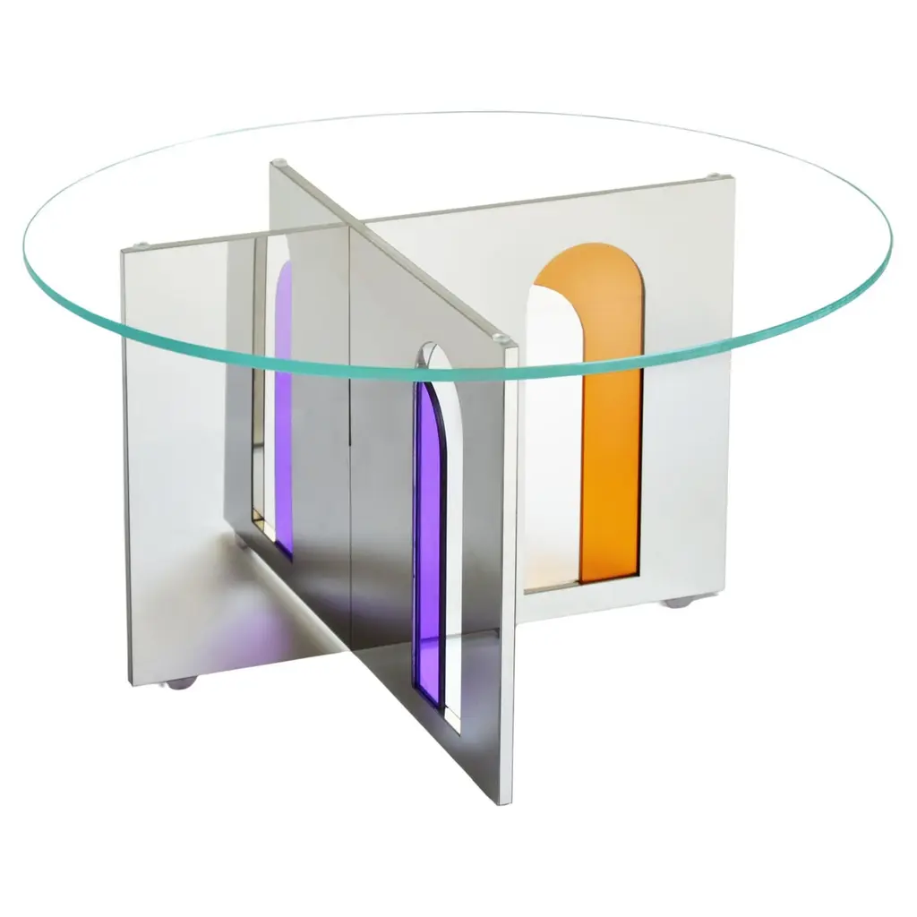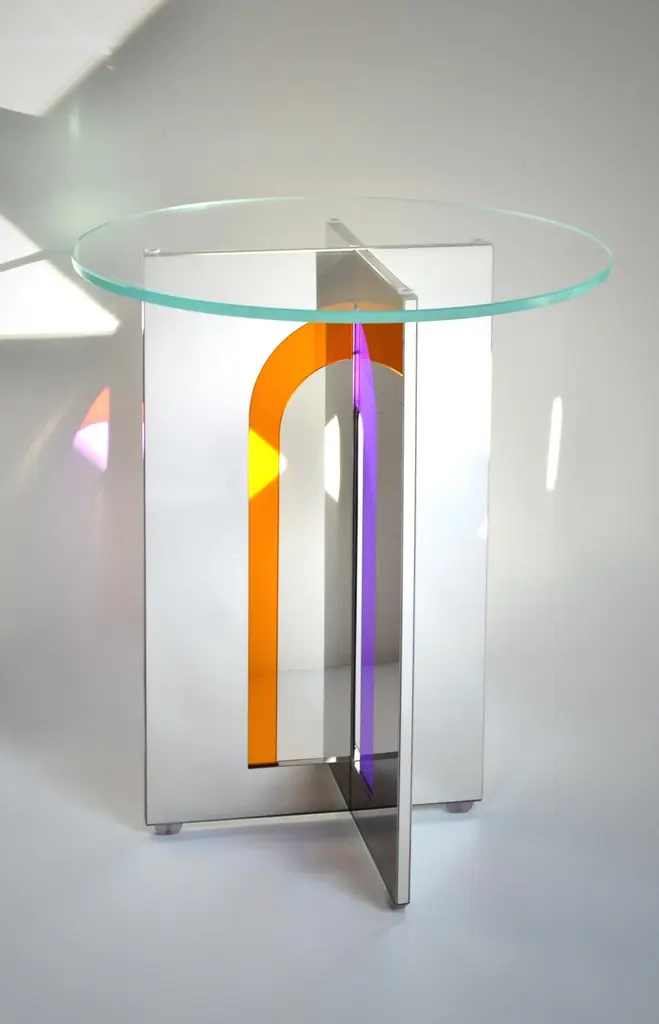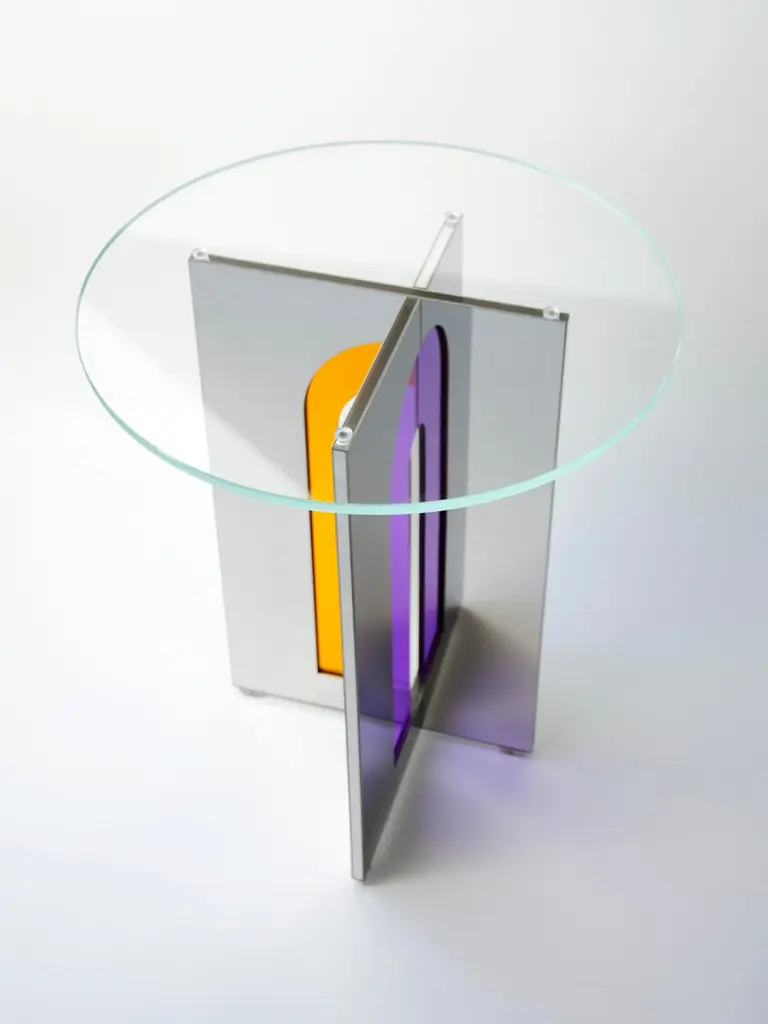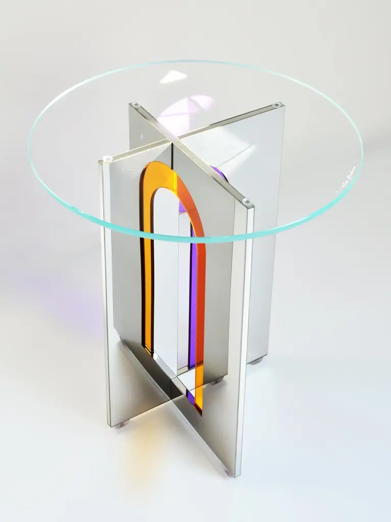 Itaca 45 Side Table by Atlas ProjectDimensions: Ø 45 x H 50 cm. Materials: Stainless mirror steel and glass.Available in different sizes. Please contact us.Itaca Coffee TablesA door that leads to infinite others. The geometries of the Itaca coffee tables invite you to a journey without a destination, where encounters, experiences, and adventures are the destination. The combination of the mirror steel surfaces and the colored glass inserts succeeds in blending styling with essentiality, elegance, and contemporaneity for a piece able to suggest the pleasure of discovering new things or just new forms of things already known.Our ProjectThe synergy between a thirty-year Italian craft experience and an original design, based on the need to research and develop topics up with the new aesthetic trends, gives birth to Atlasproject, an exclusive furniture collection conceived by the designer Massimiliano Giordano.Born and developed first in Copenhagen, then in Vienna and finally in Rome, the project is – as a matter of fact - a journey of contamination and encounter between the many cultures of the European Design.The production is focused on a dynamic dialogue between geometries and materials, which leads to collections of deep impact and elegance. Every piece merges essential geometric shapes with the most surprising materials, textures, and colors, as the result of a careful selection of natural materials and hand-processed metals.The Atlasproject collections are entirely made in Italy, where the tradition of artisanality is still a deep value, to ensure high-quality and long-life products.Of Neapolitan origins, Massimiliano Giordano grew up inthe family’s artistic atelier.The artisan knowledge and the design skills lead him to Atlasproject, a creative container inspired by the journey, leit motiv of his personal and professional life. In fact, the designer leaves from Naples towards Copenhagen, where he will stay for five years, and then for Vienna for five years more in the heart of the Mitteleuropean design, and finally in Rome, where he currently lives and works.The amazing connections between the encountered design souls actually represent the most significant stylistic figure of his works.