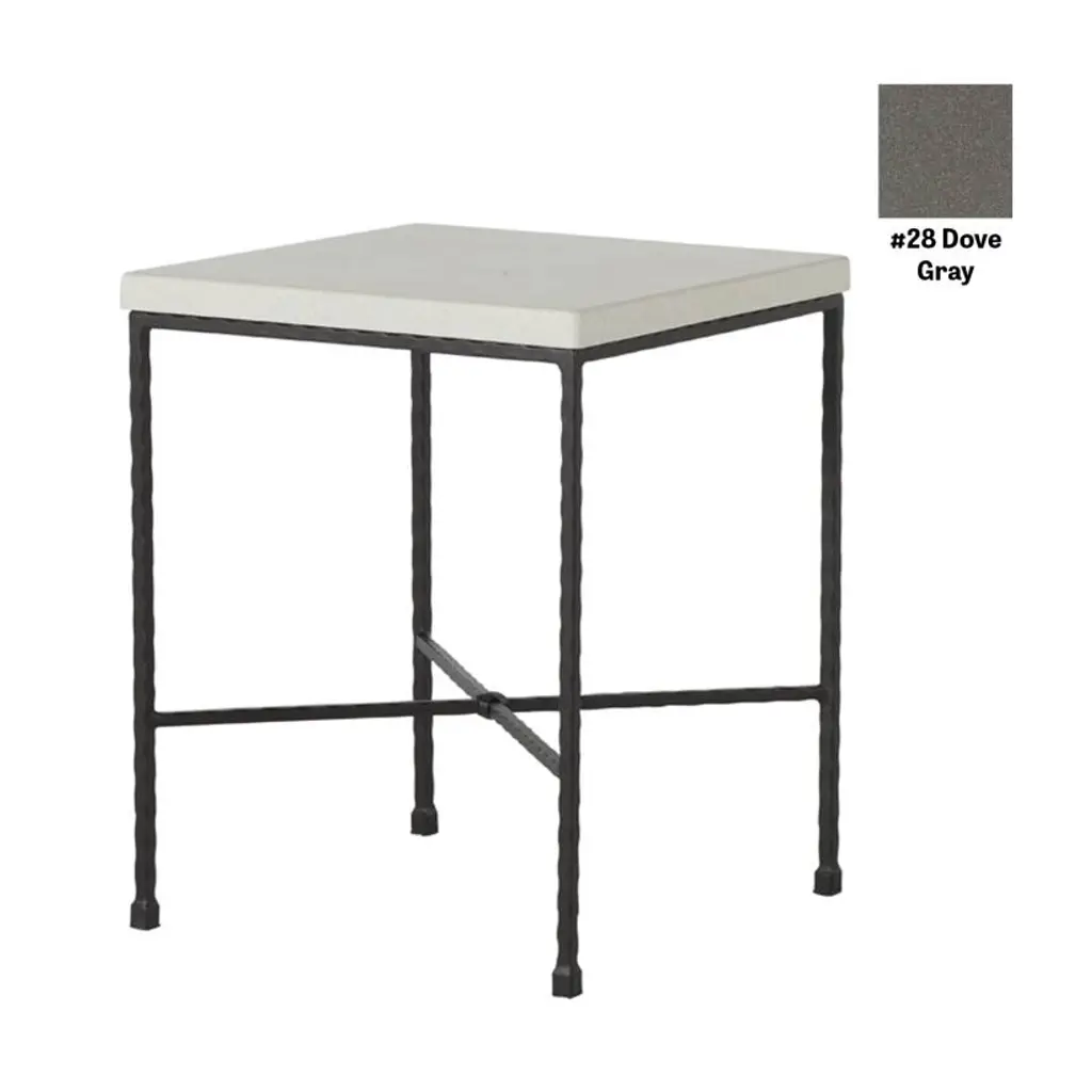 The Italia 18" Square End Table combines the enduring elegance of wrought iron heirlooms and the lasting quality of solid hammered iron bars with a design that features slender lines and a simple X-stretcher for a timeless look with lasting durability. Crafted with precision, the wrought iron is electrogalvanized for rust resistance and finished in architectural-grade powder coating. The Superstone tabletop, a five-layer composite with a granite look and lightweight core, ensures durability and easy maintenance, enhancing any outdoor space with its timeless charm and robust construction.
