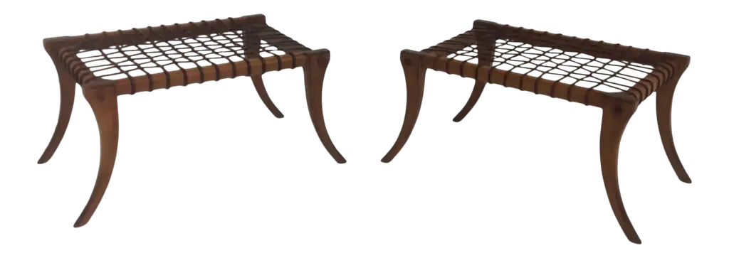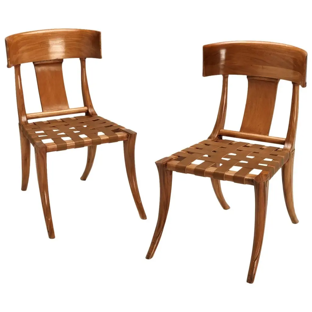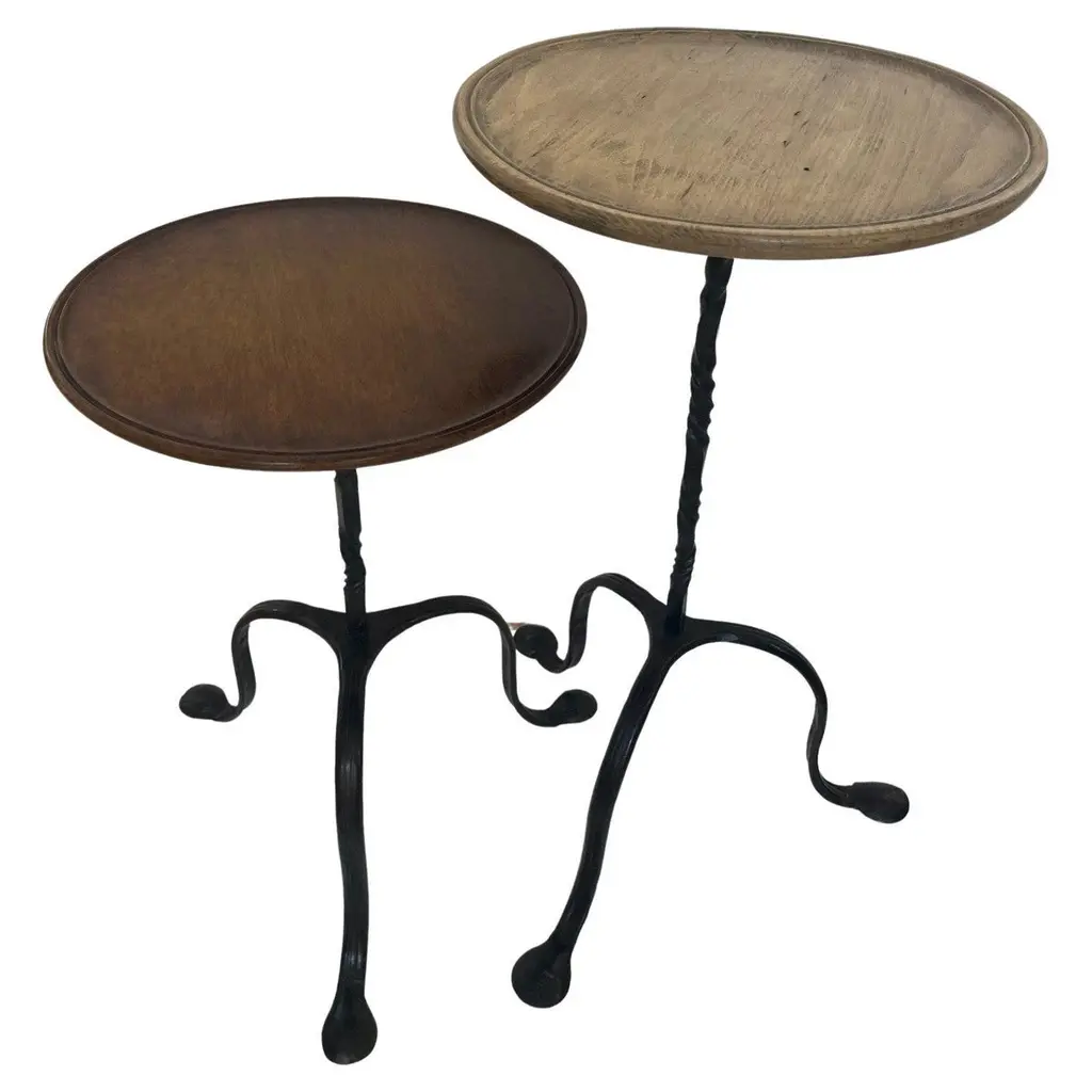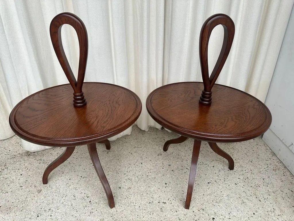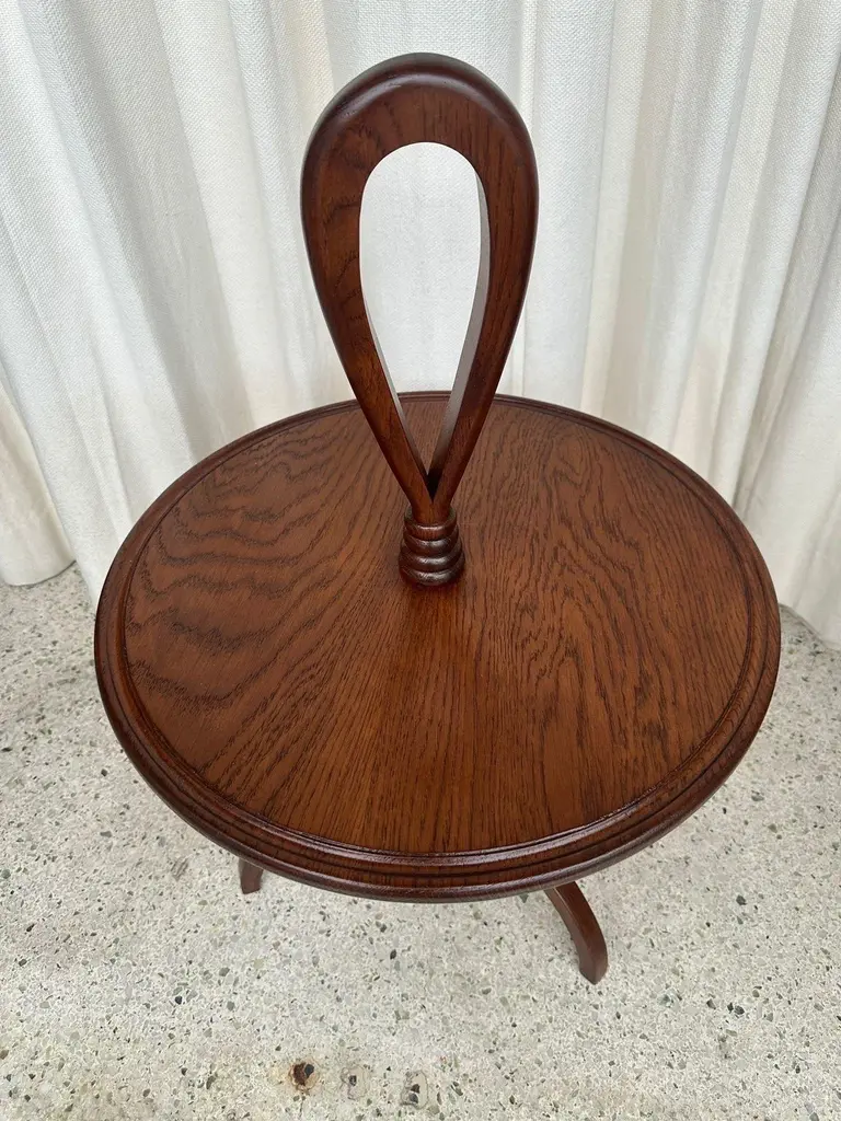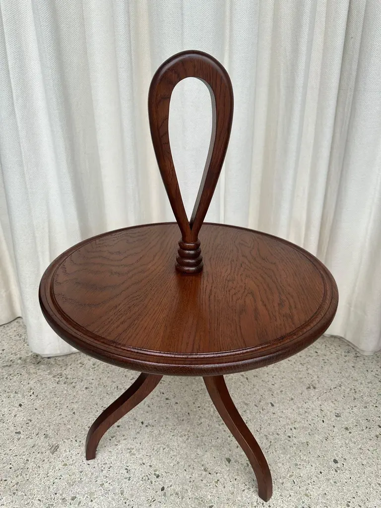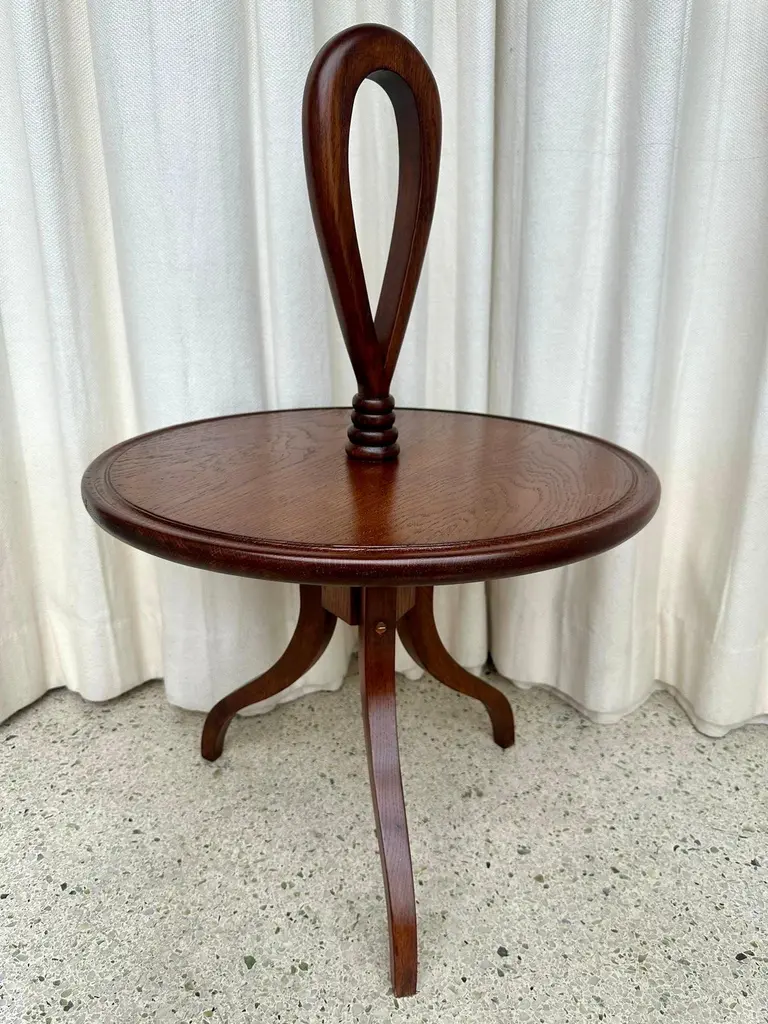 Italian Carved Wood Side Table (Two Available) W/ Ribbon Handle Top