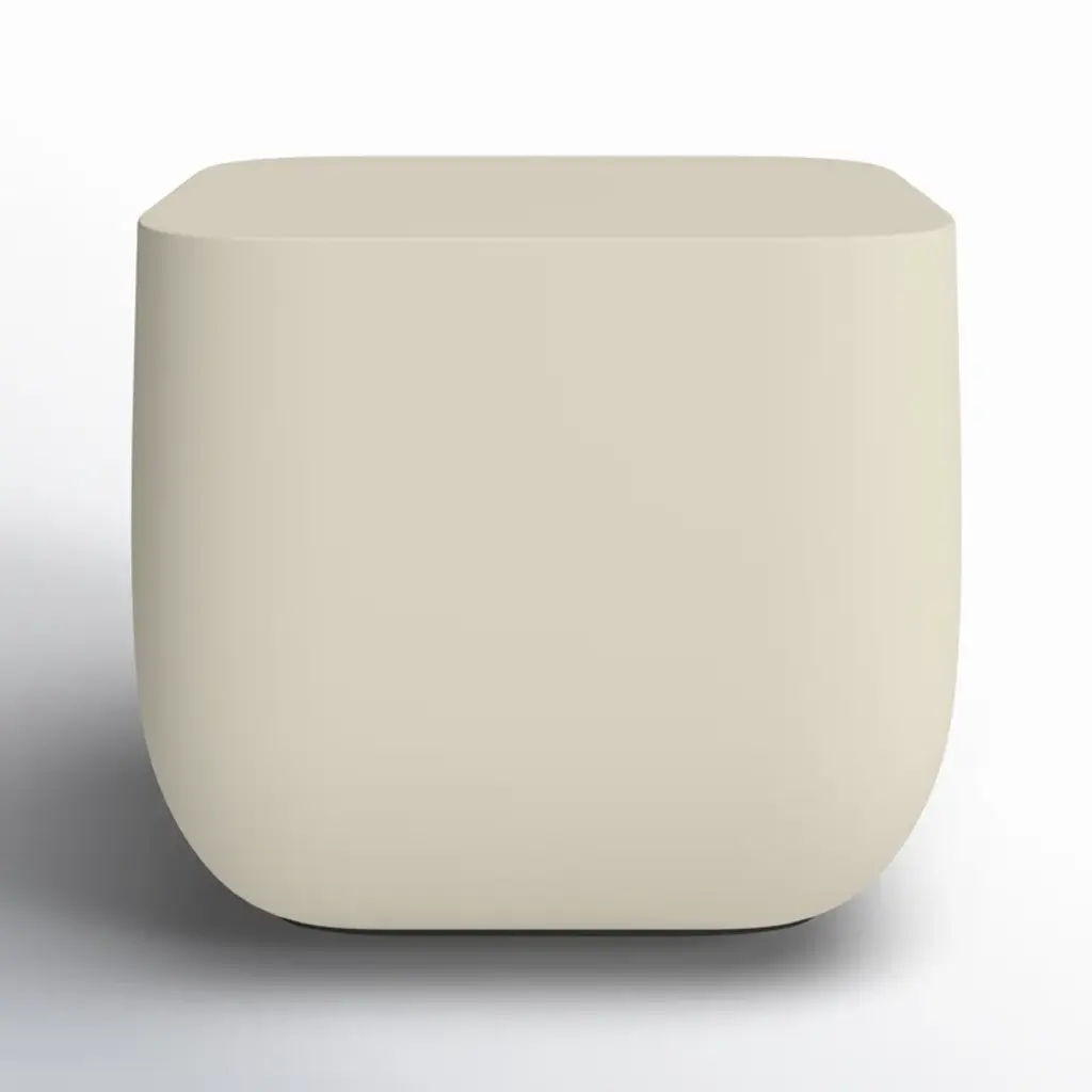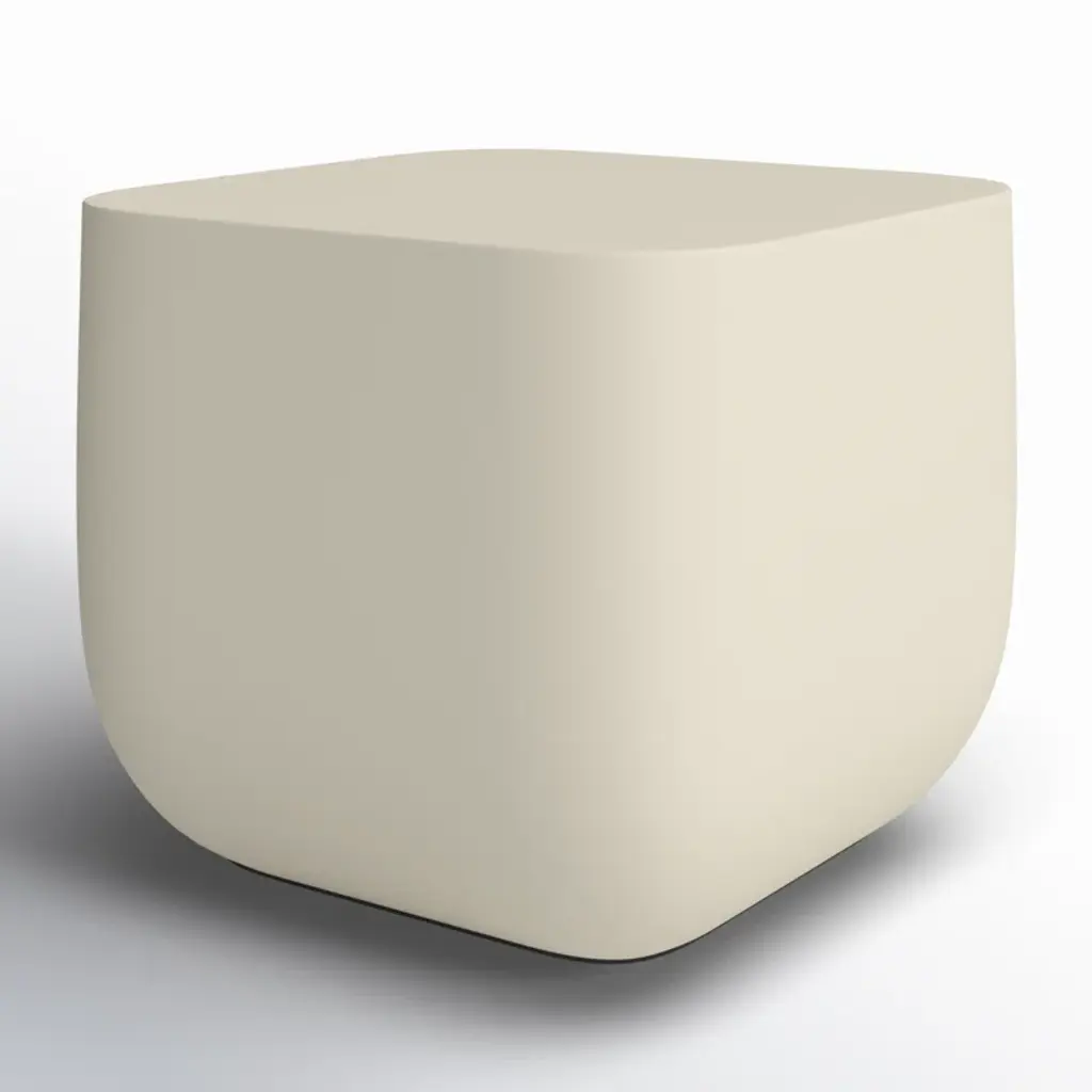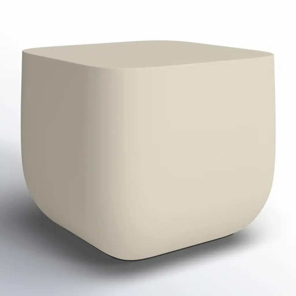 Gray-finished concrete and soft square shaping make for an effortlessly cool end table, indoors or out. Cover or store inside during inclement weather and when not in use.