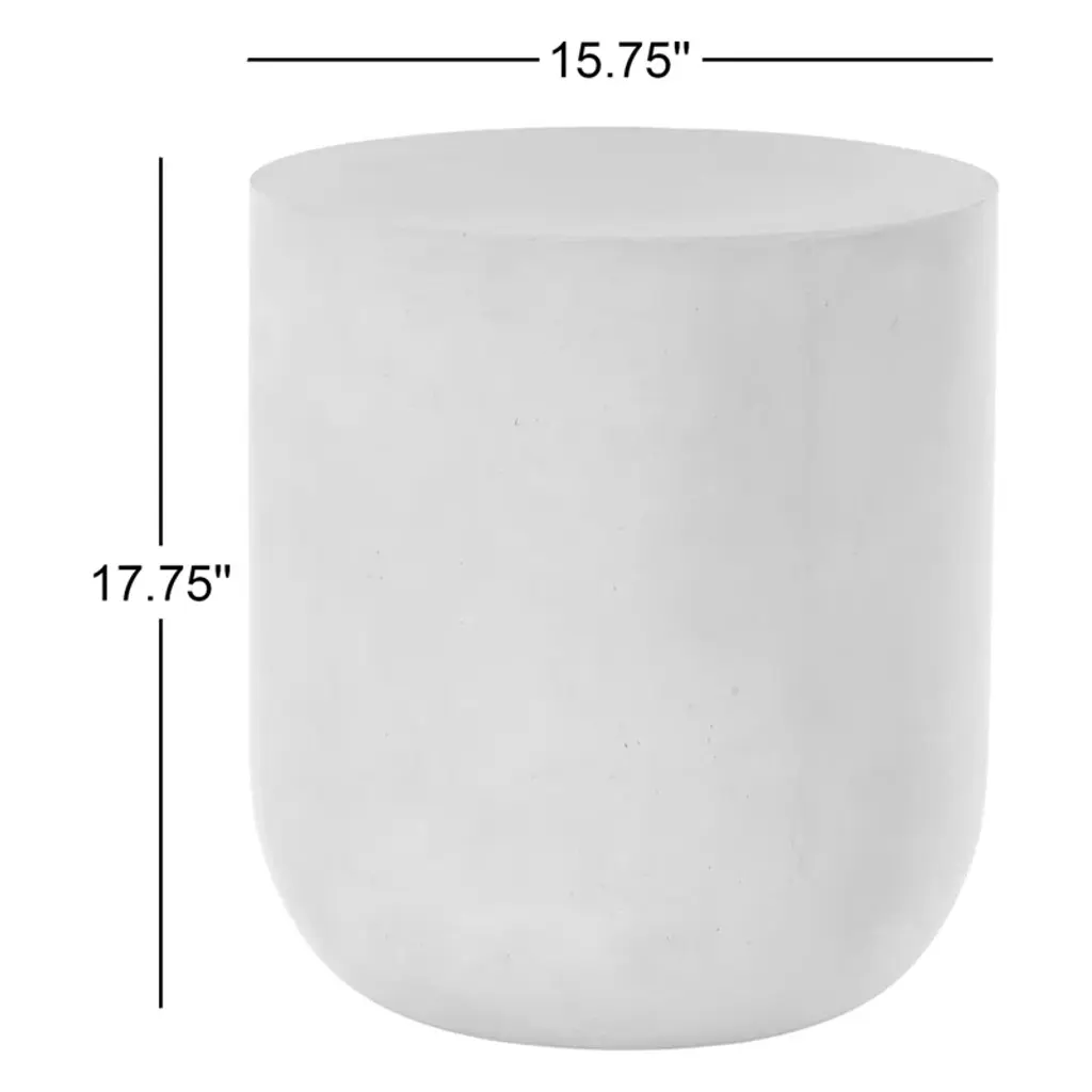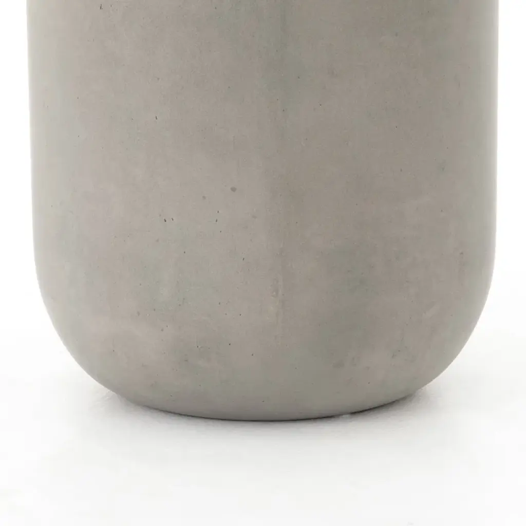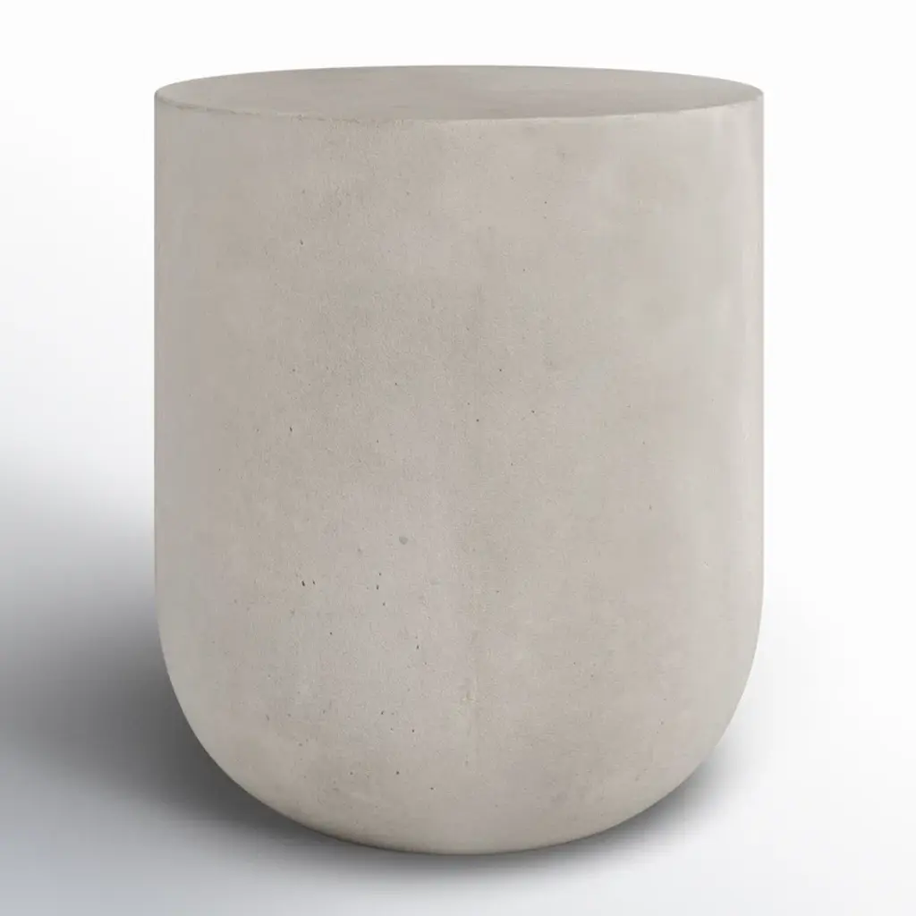 The end table captures a modern aesthetic with its sleek, drum-shaped design. Crafted entirely from concrete, it brings a touch of industrial chic to your living space. Its round top and base offer a cohesive look, making it versatile for both indoor and outdoor settings. This table stands alone, perfect for those who appreciate minimalist design. Its sturdy construction ensures it remains a steadfast piece in your decor. For outdoor use, consider pairing it with lounge chairs for a contemporary patio setup.