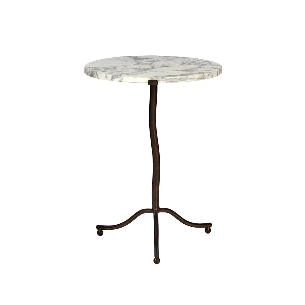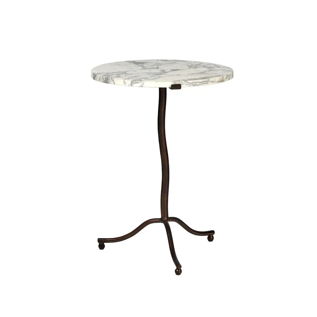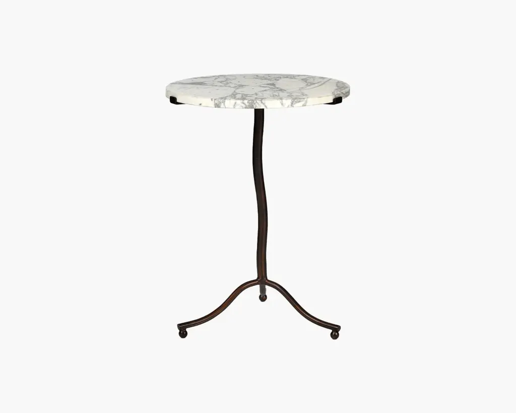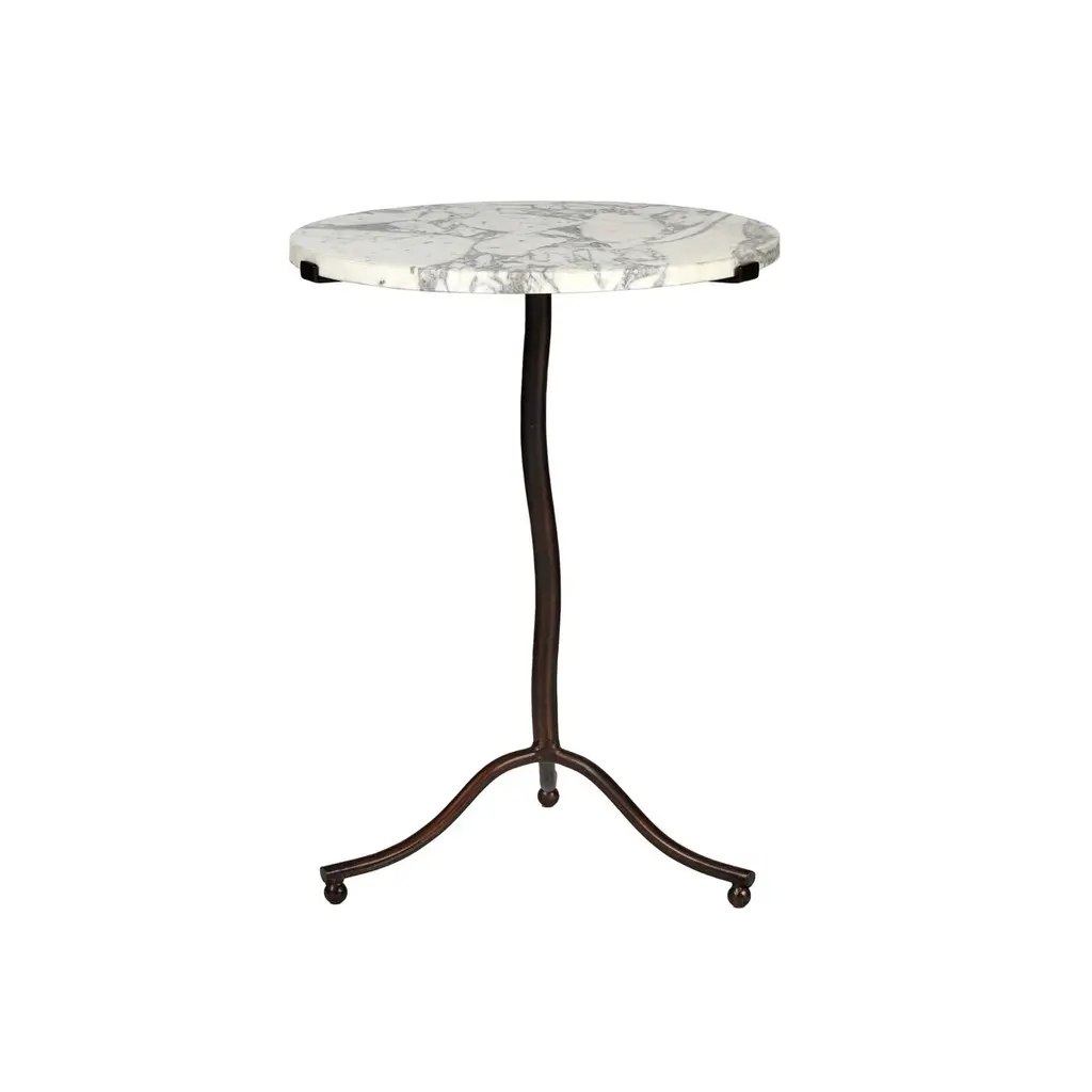 The Ivy End Table is a sophisticated piece that seamlessly blends classic design with modern elegance. Its sturdy base provides a striking contrast to the smooth marble top, which features heavy veining for added visual interest and movement. This end table is a versatile addition to any living space, offering both functionality and a touch of refined style.