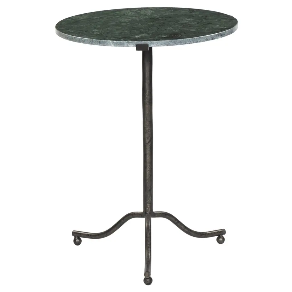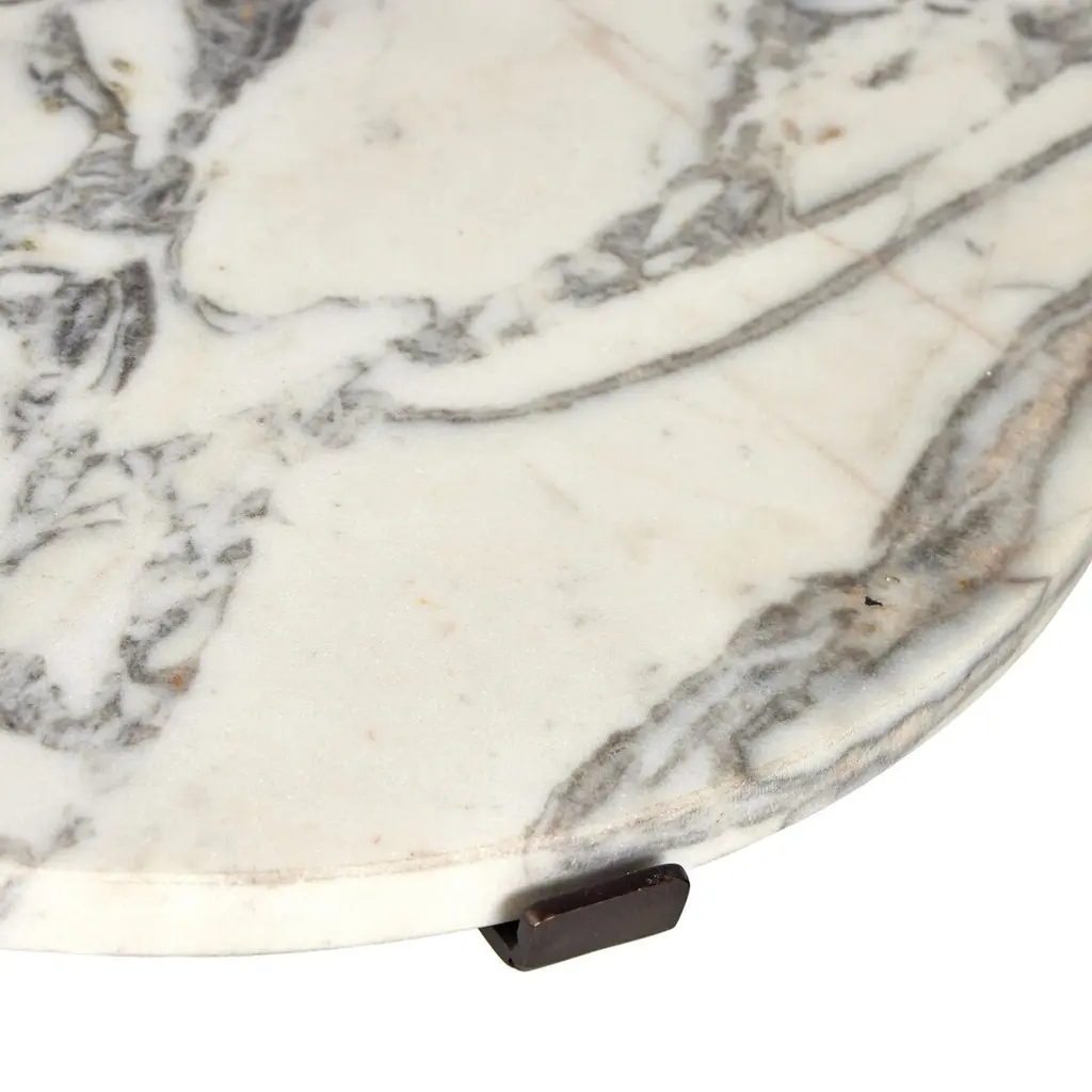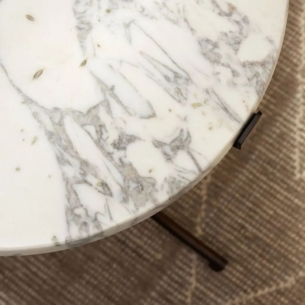 The Ivy End Table is a sophisticated piece that seamlessly blends classic design with modern elegance. Its sturdy base provides a striking contrast to the smooth marble top, which features heavy veining for added visual interest and movement. This end table is a versatile addition to any living space, offering both functionality and a touch of refined style.