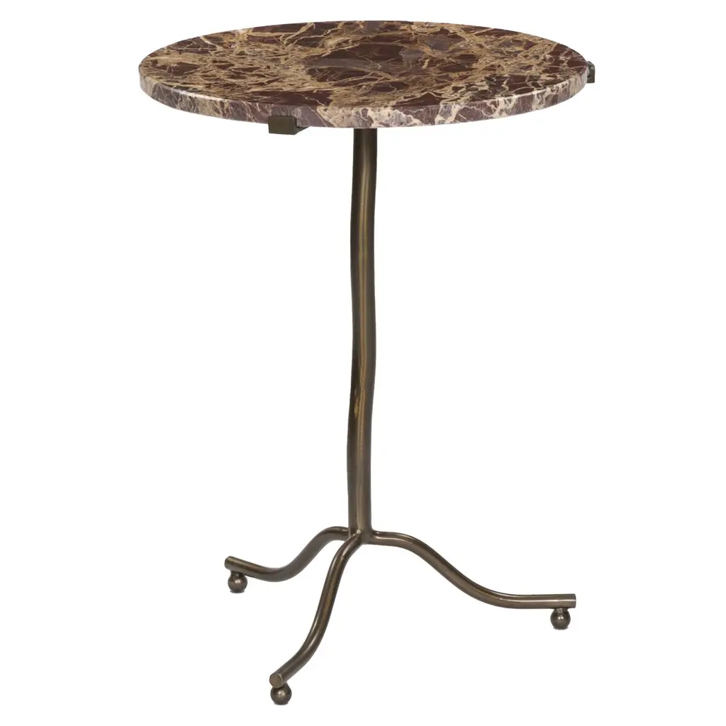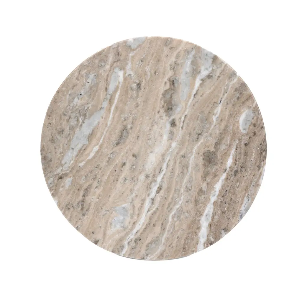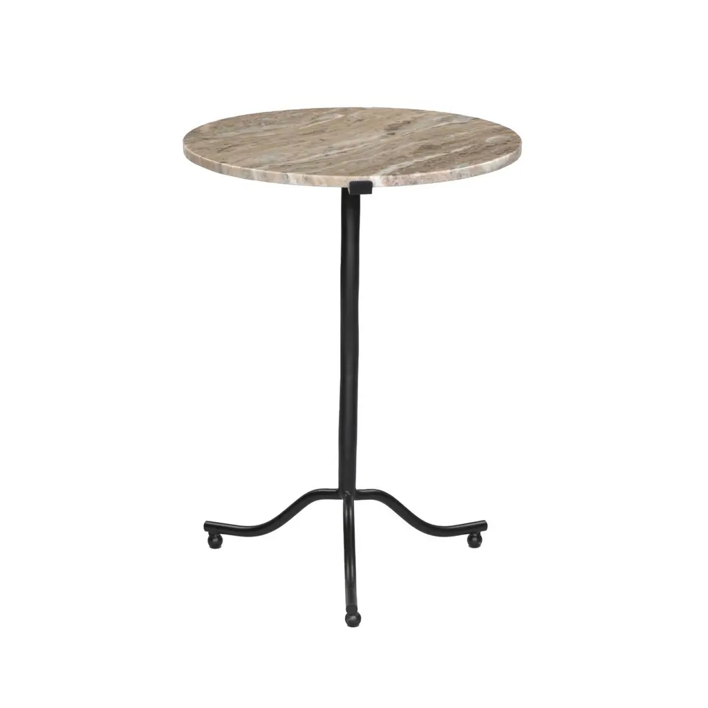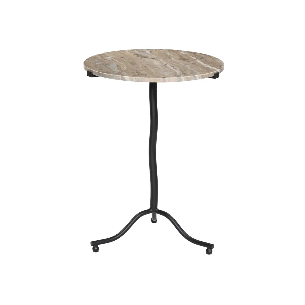 The Ivy End Table is a sophisticated piece that seamlessly blends classic design with modern elegance. Its sturdy base provides a striking contrast to the smooth marble top, which features heavy veining for added visual interest and movement. This end table is a versatile addition to any living space, offering both functionality and a touch of refined style.
