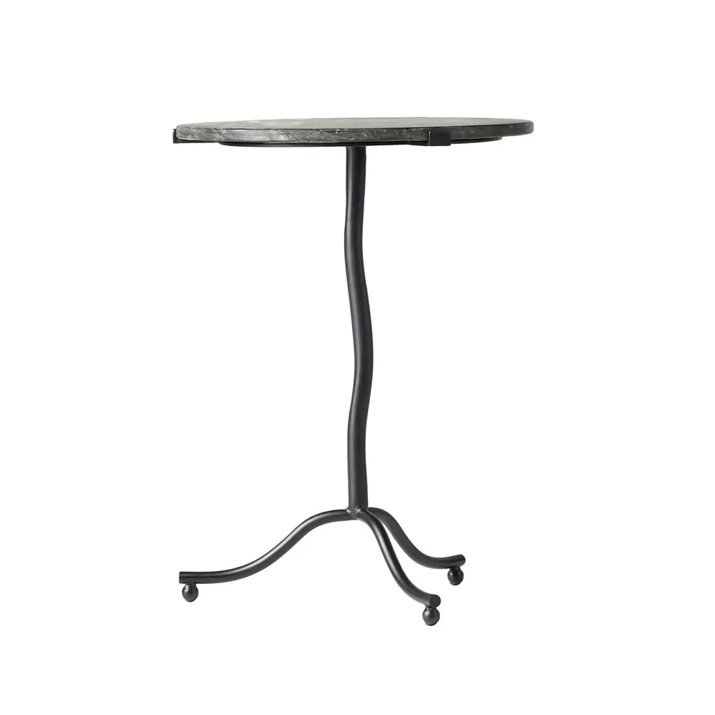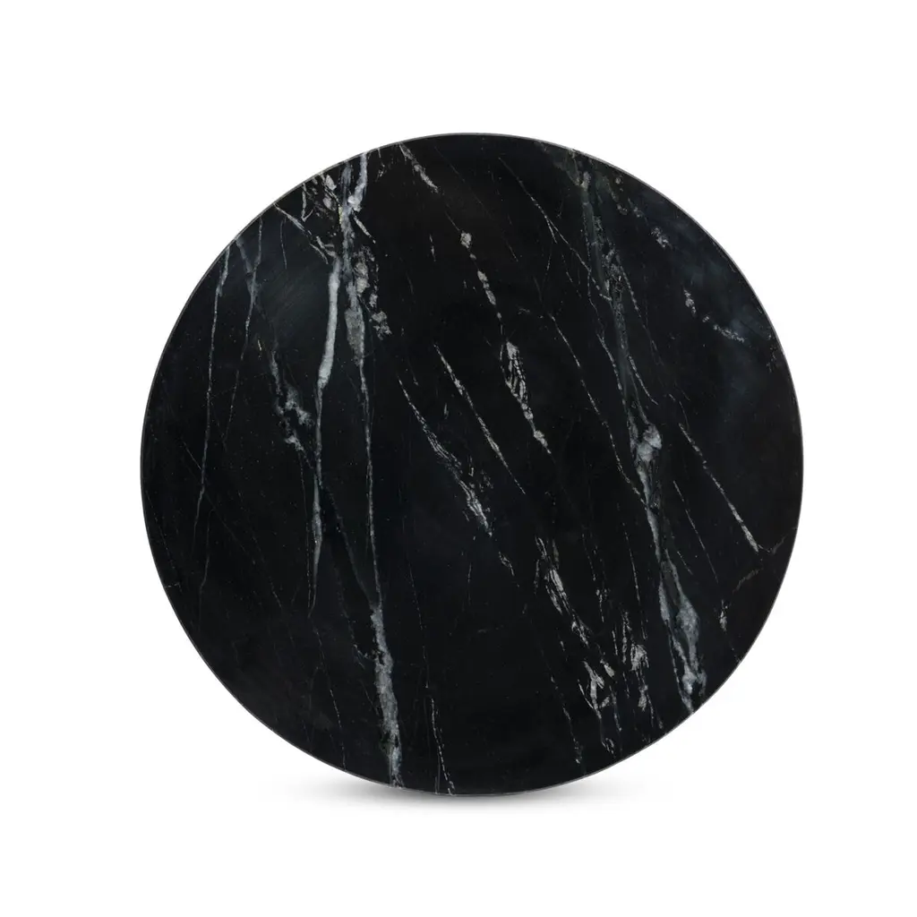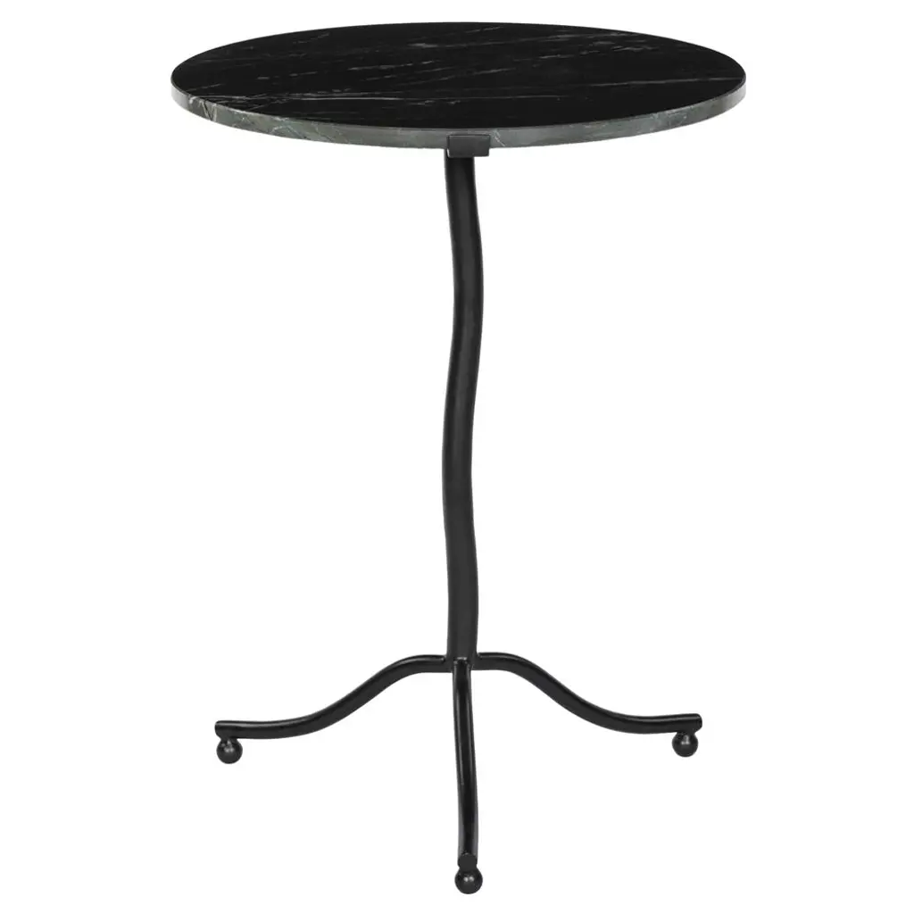 The Ivy End Table is a sophisticated piece that seamlessly blends classic design with modern elegance. Its sturdy base provides a striking contrast to the smooth marble top, which features heavy veining for added visual interest and movement. This end table is a versatile addition to any living space, offering both functionality and a touch of refined style.
