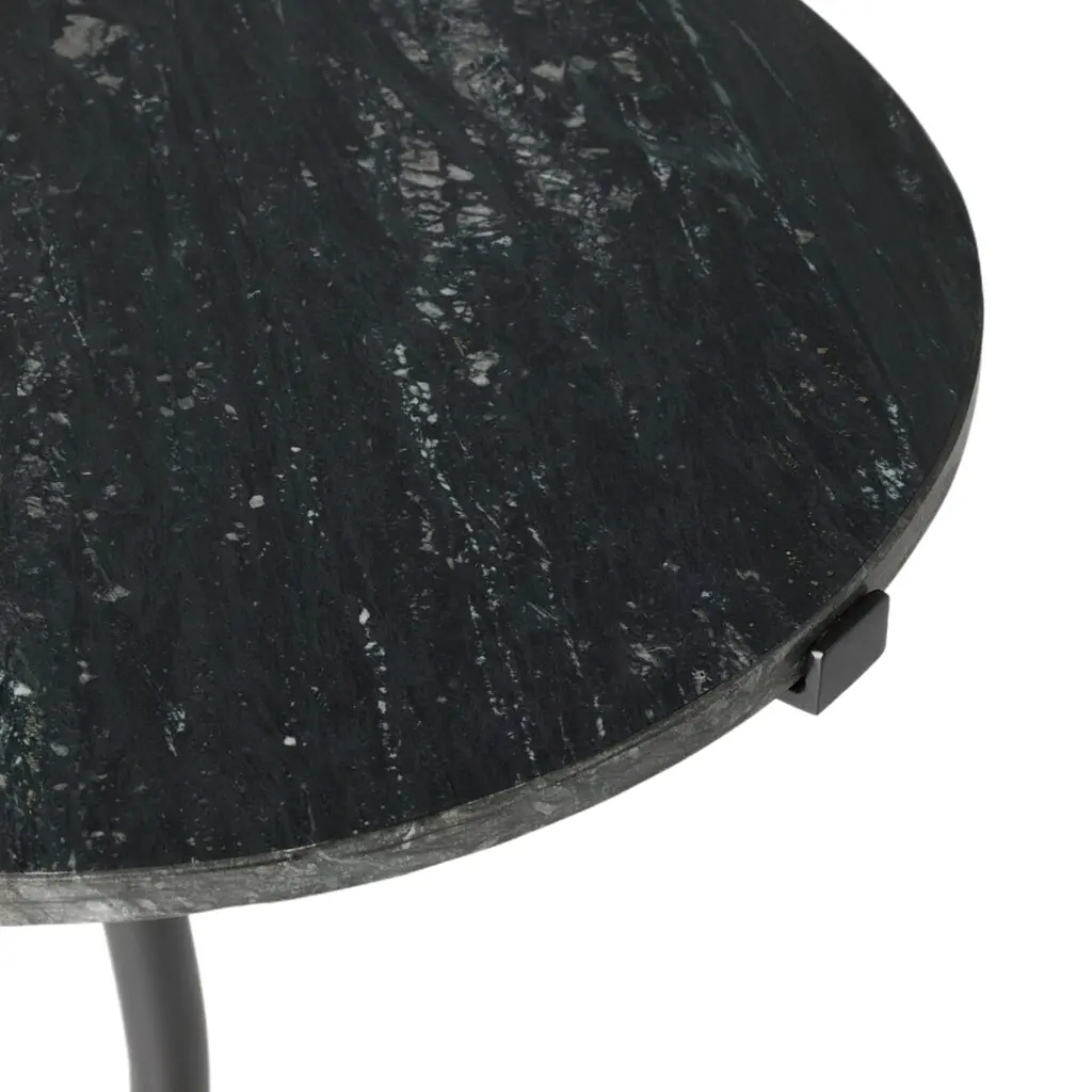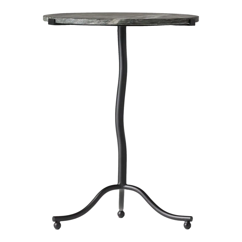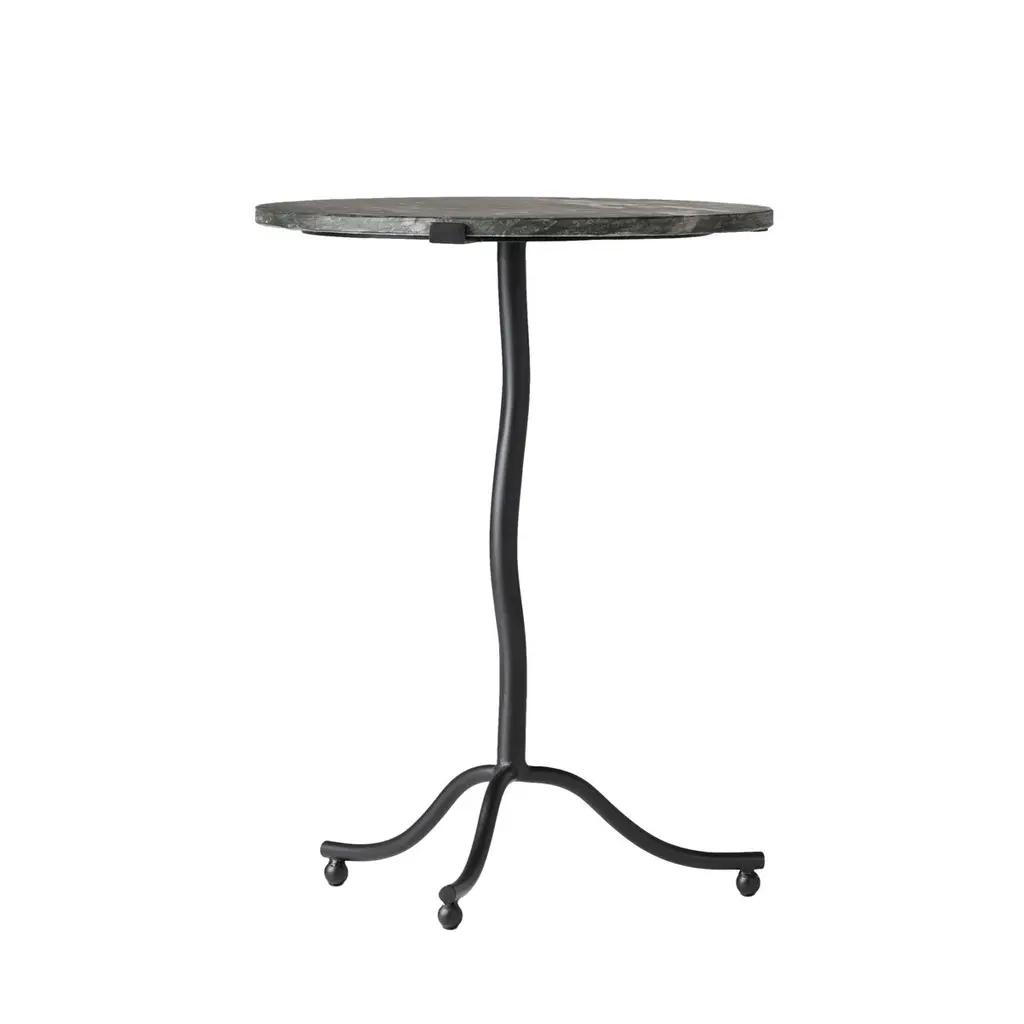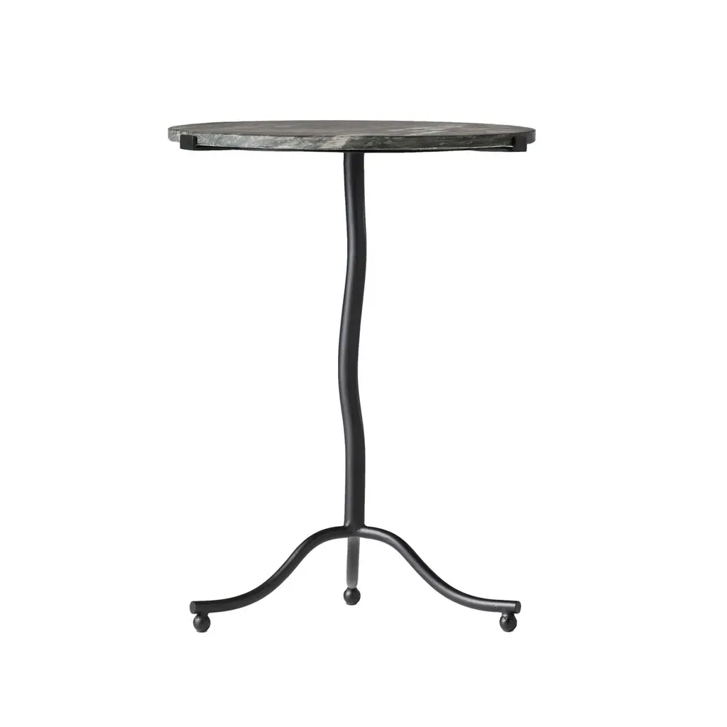 The Ivy End Table is a sophisticated piece that seamlessly blends classic design with modern elegance. Its sturdy base provides a striking contrast to the smooth marble top, which features heavy veining for added visual interest and movement. This end table is a versatile addition to any living space, offering both functionality and a touch of refined style.