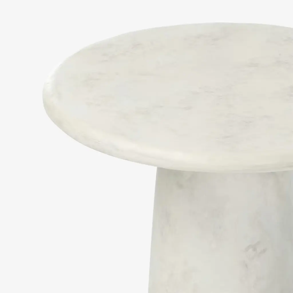 With its pedestal base, rounded table top, and textured lunar-inspired finish, the Jace End Table is sure to add some modern style to accompany your sofas, chairs or even bed! Crafted with textured concrete with a water-transfer finish that resembles natural stone, the Jace offers a piece that’s both sturdy and stylish.