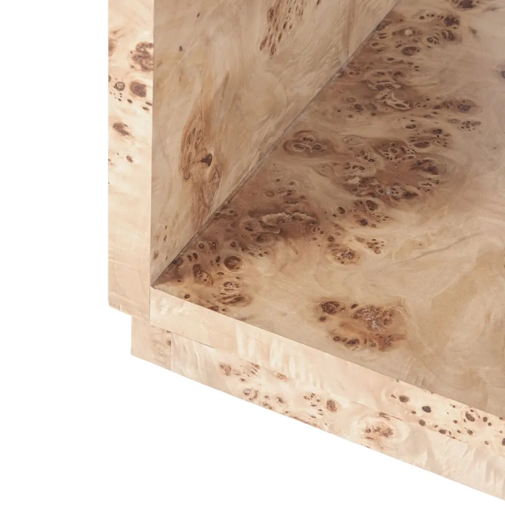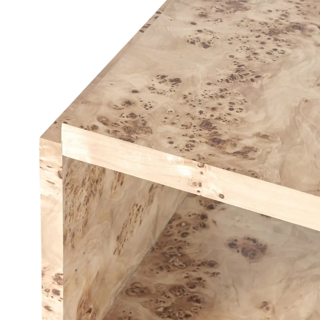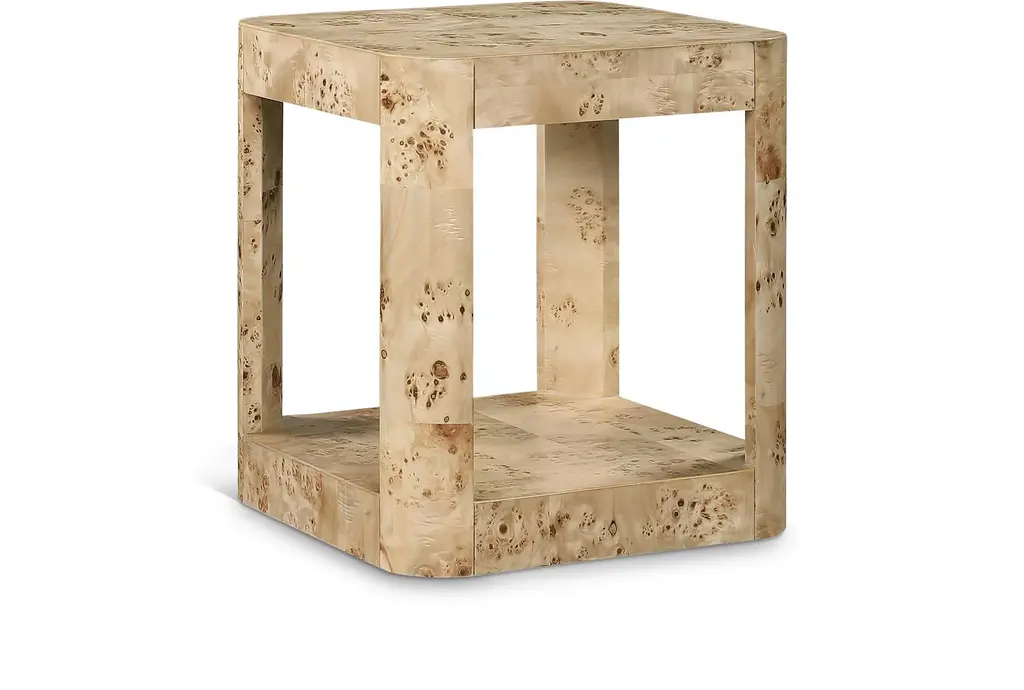 The Jackson Side Table features a modern design with a hollow interior that serves as a convenient shelf. Crafted from high-quality materials, this versatile table is perfect for holding drinks or books while adding a unique touch to your living space.