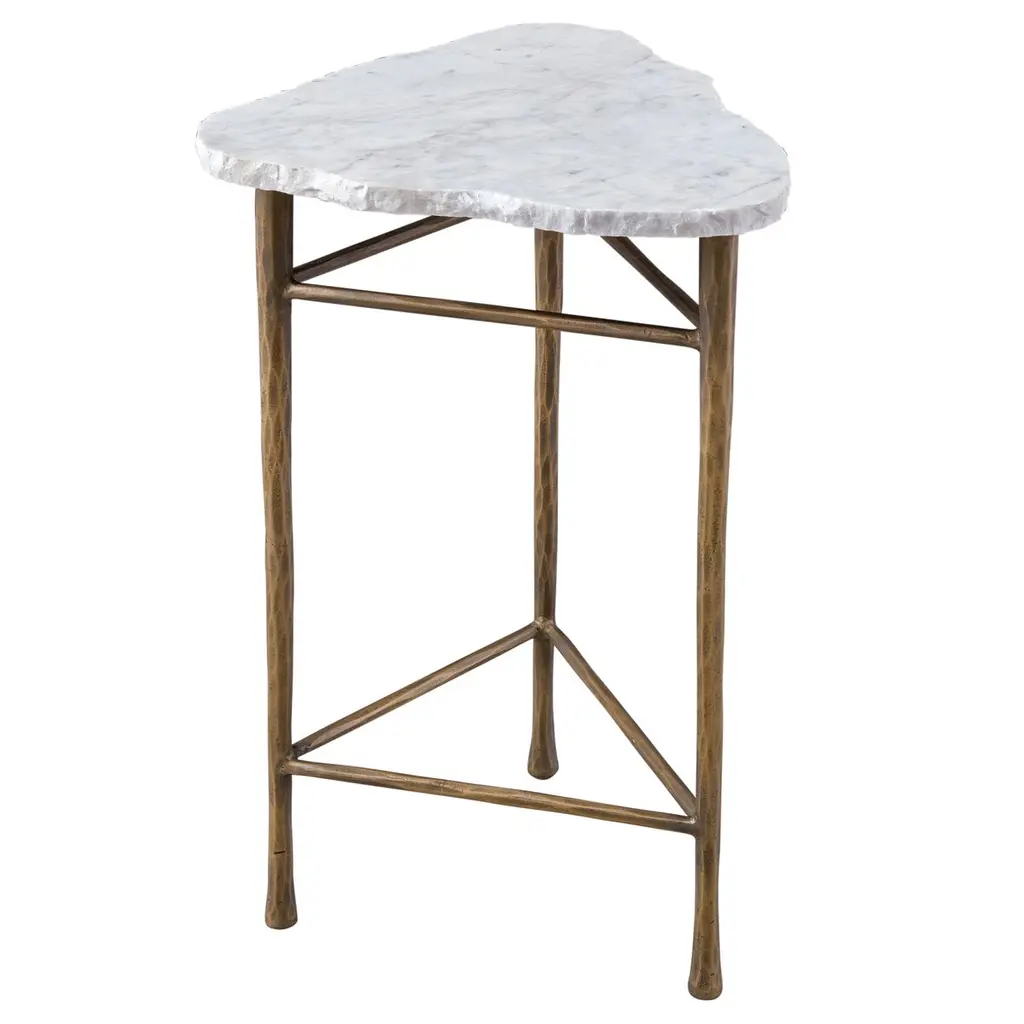 Bringing the best of the earth indoors, this accent table offers a magnificent veneered top with a tri-leg wrought iron base. The edges of the top feature an organic cut.