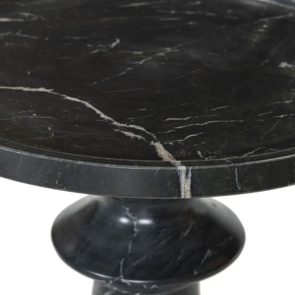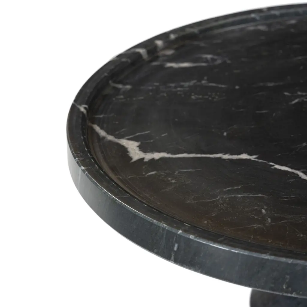 The Jagger End Table is a stunning piece that combines elegance and functionality. Expertly crafted from solid marble, it features a beautifully sculpted silhouette achieved through precise lathe work. Its tray top design offers the perfect spot to keep your favorite drink or book within easy reach, making it a versatile addition to any living space.