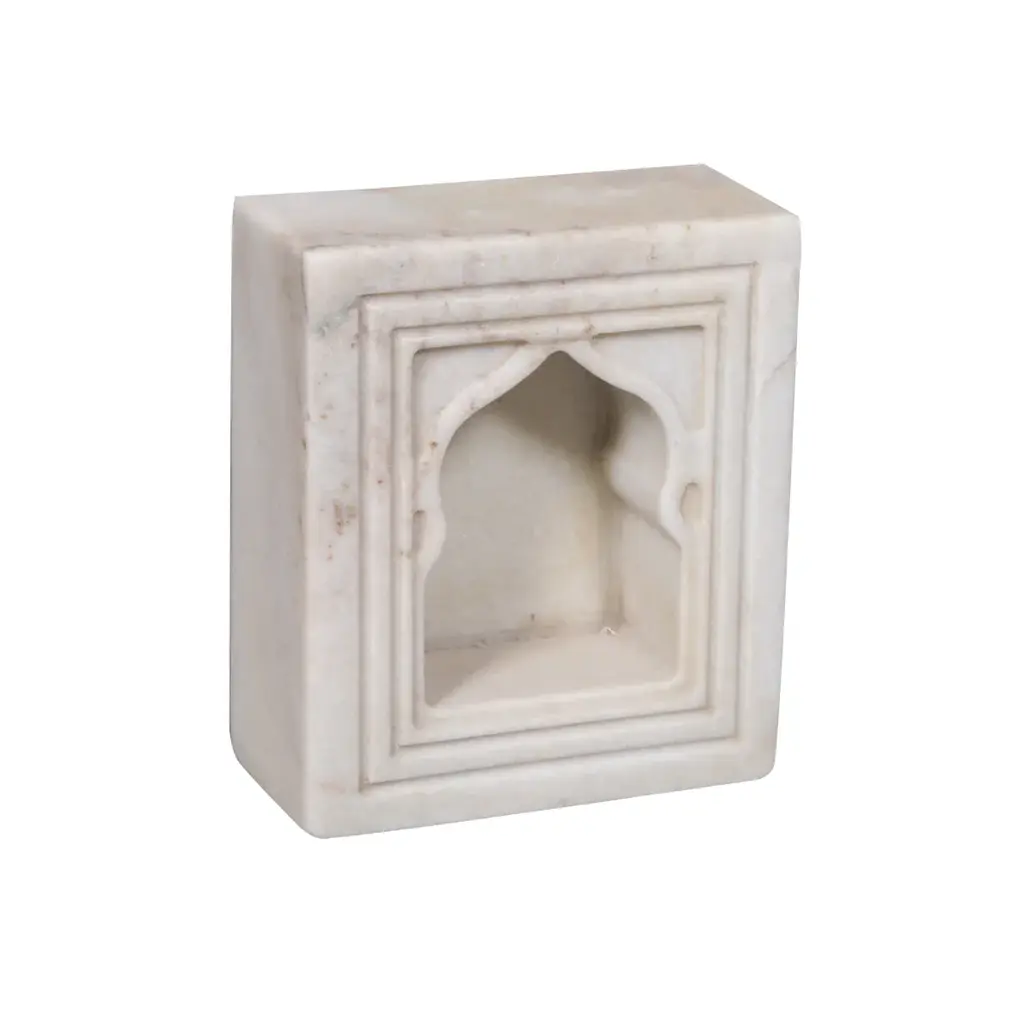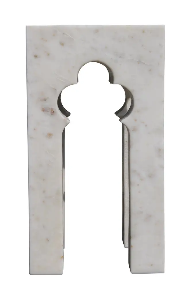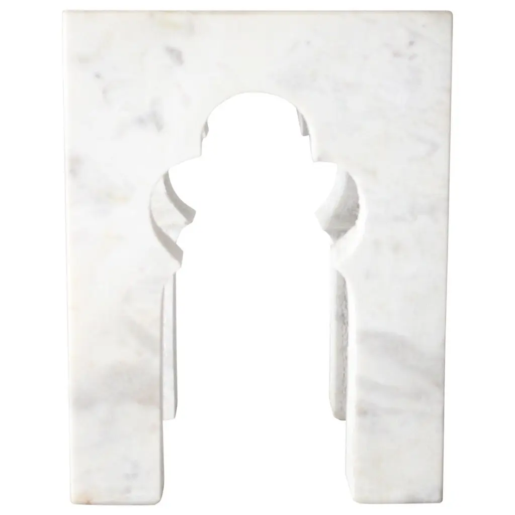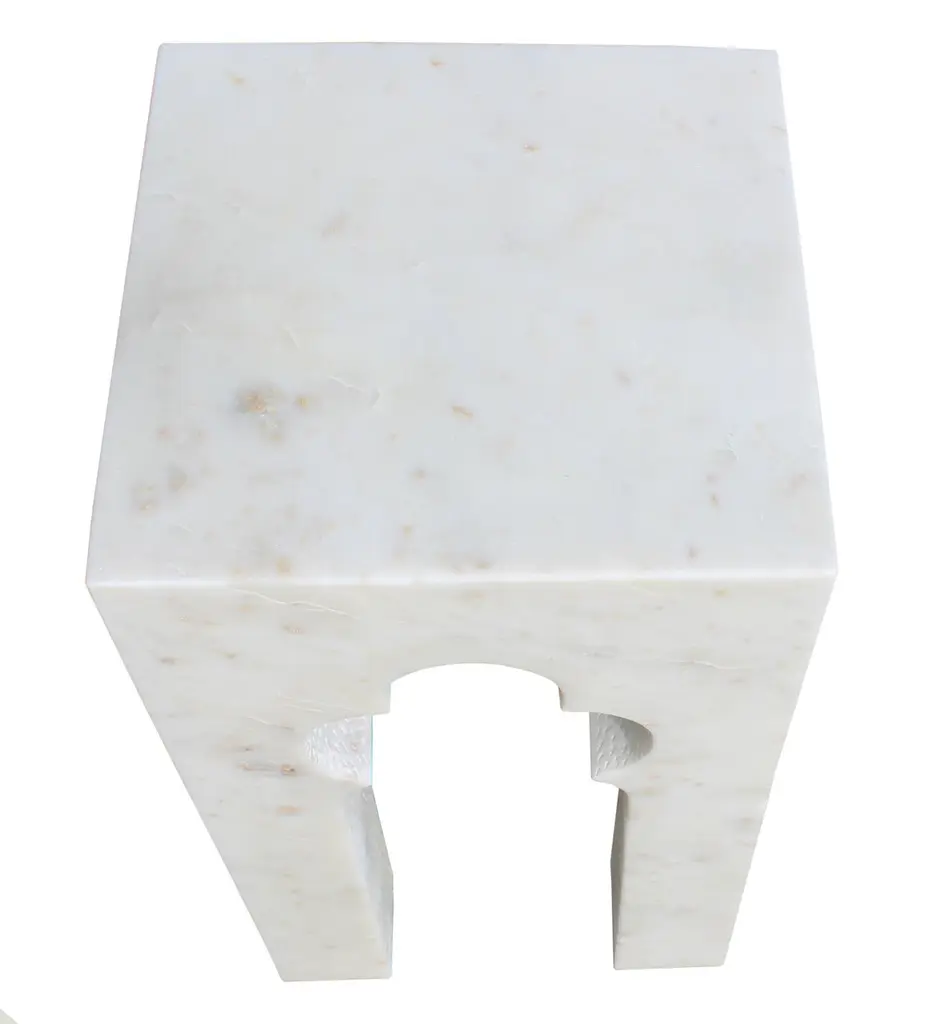 Inspired by the elegant architectural element, namely the mehrabs, he saw in the palaces of Mughal India, the renowned designer Paul Mathieu has created this unique hand-carved side table. Solid blocks of marble are hand-carved into low elegant tables before they are polished by hand. The contrast between the elegant inline of the mehrab with the clean and solid outline is the most striking feature of this design. Jahangir side table in White Marble Size- 12" x 12" x 21.7" HMaterials - White marble, hand-carvedBuyer cancellation-The cancellation charge is 25% which increases to 50% if the production is started.Prices do not include shipping from India (for custom orders) or our MN warehouse (items from stock). That will be additional.