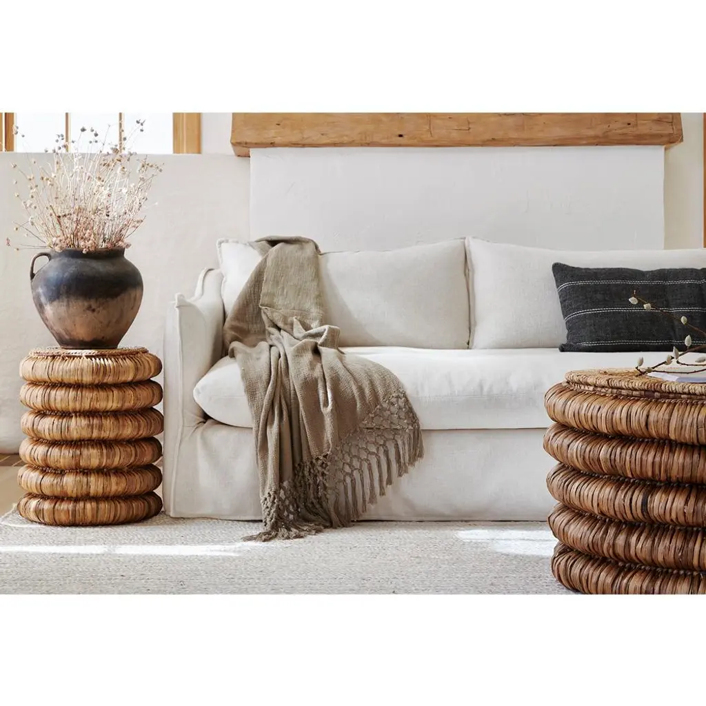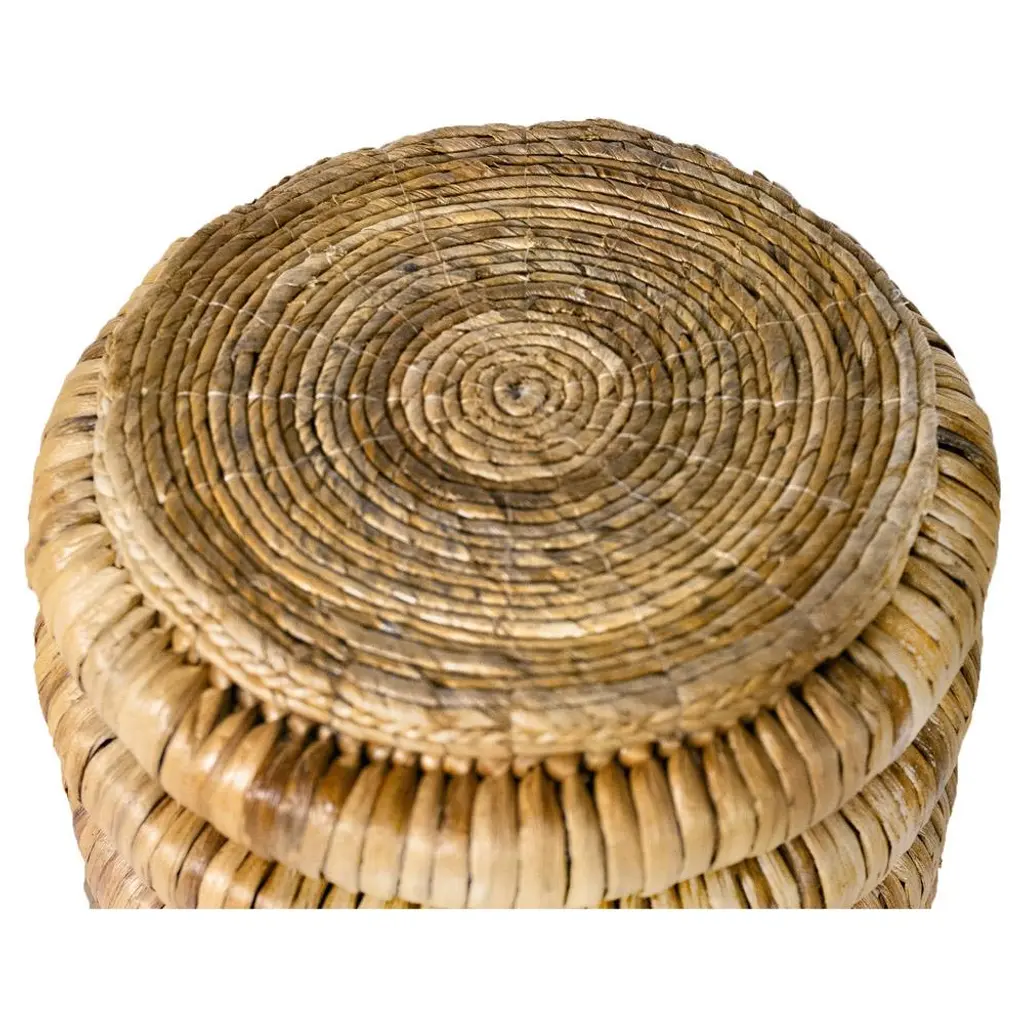James Coastal Natural Brown Water Hyacinth Round Side Table